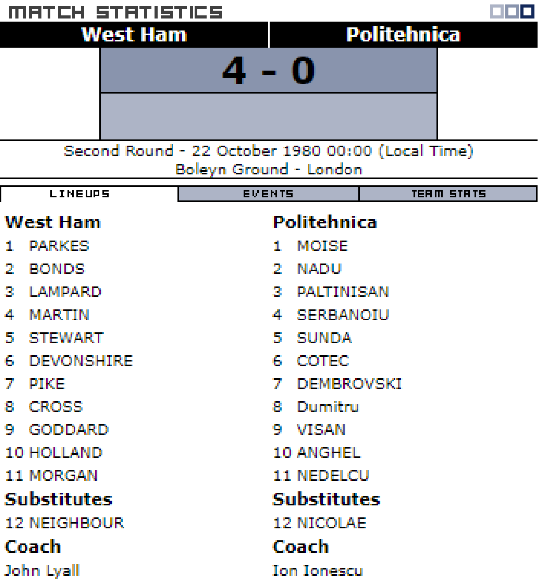 «Вест Хэм Юнайтед» Лондон - «Политехника» Тимишоара - 4:0
