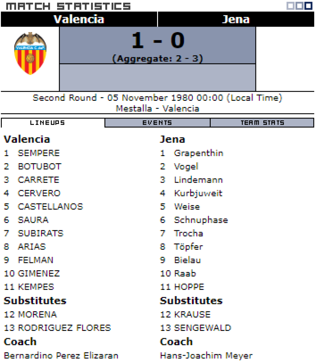 «Валенсия» Валенсия - «Карл Цейсс» Йена - 1:0