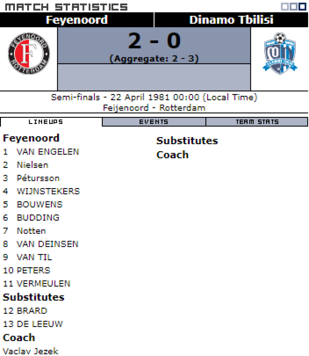 «Фейеноорд» Роттердам - «Динамо» Тбилиси - 2:0