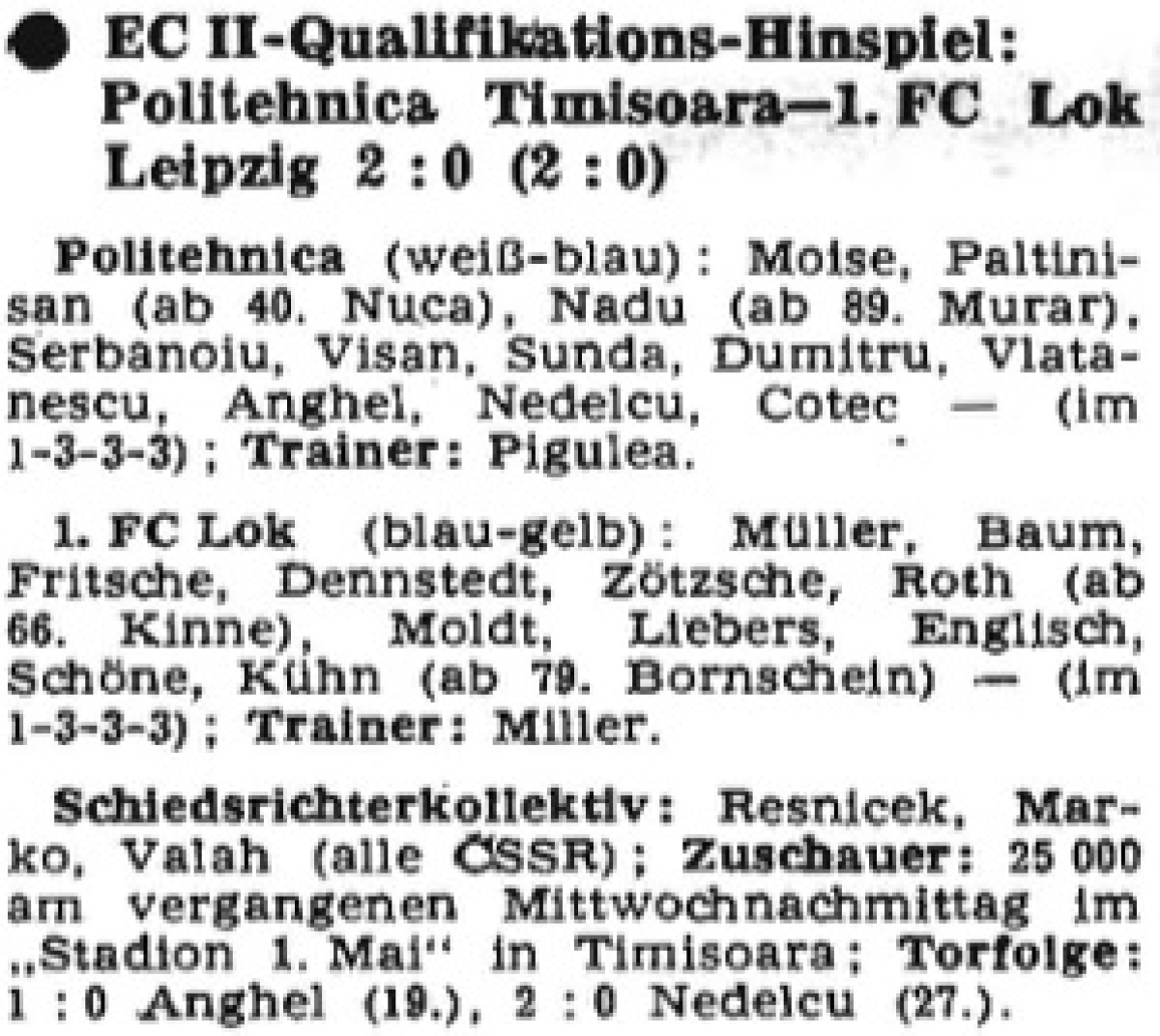 «Политехника» Тимишоара - «1. ФК Локомотив» Лейпциг - 2:0