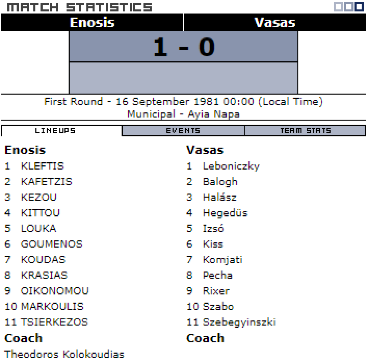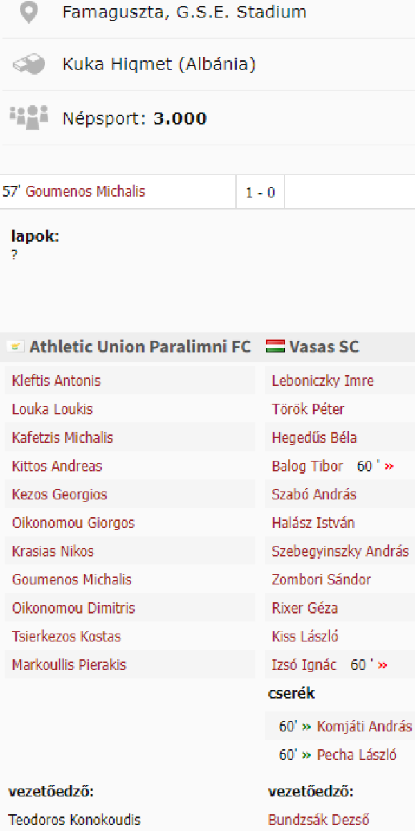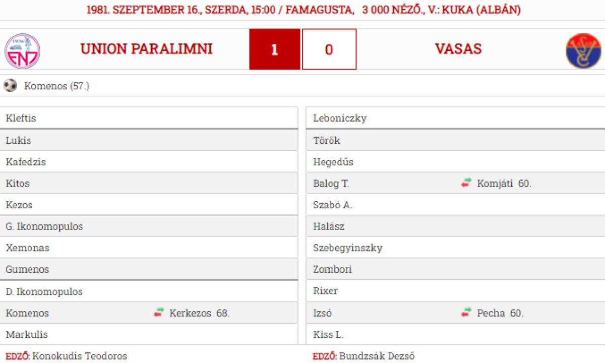 «Эносис Неон» Паралимни - «Вашаш» Будапешт - 1:0