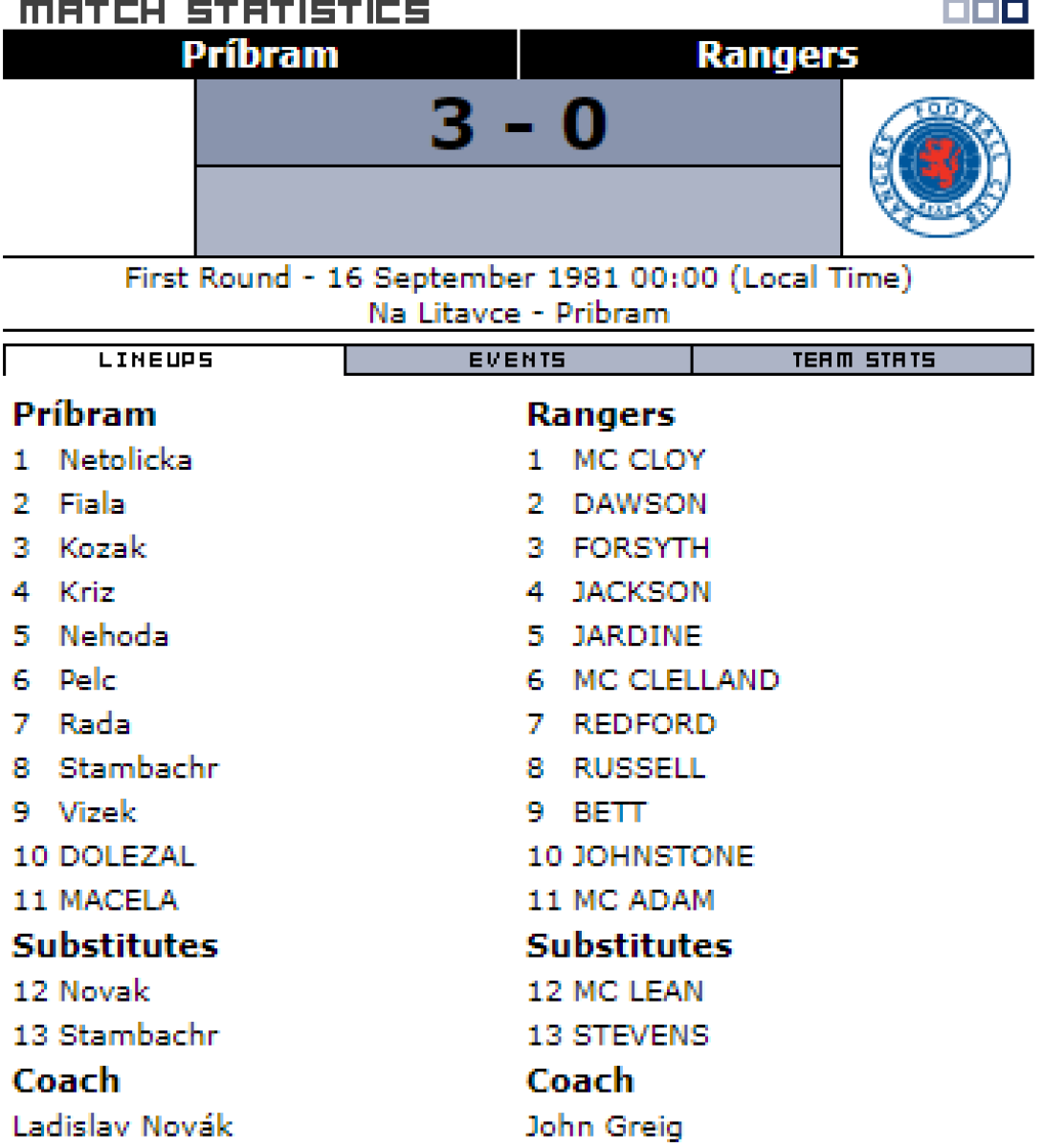 «Дукла» Прага - «Рейнджерс» Глазго - 3:0
