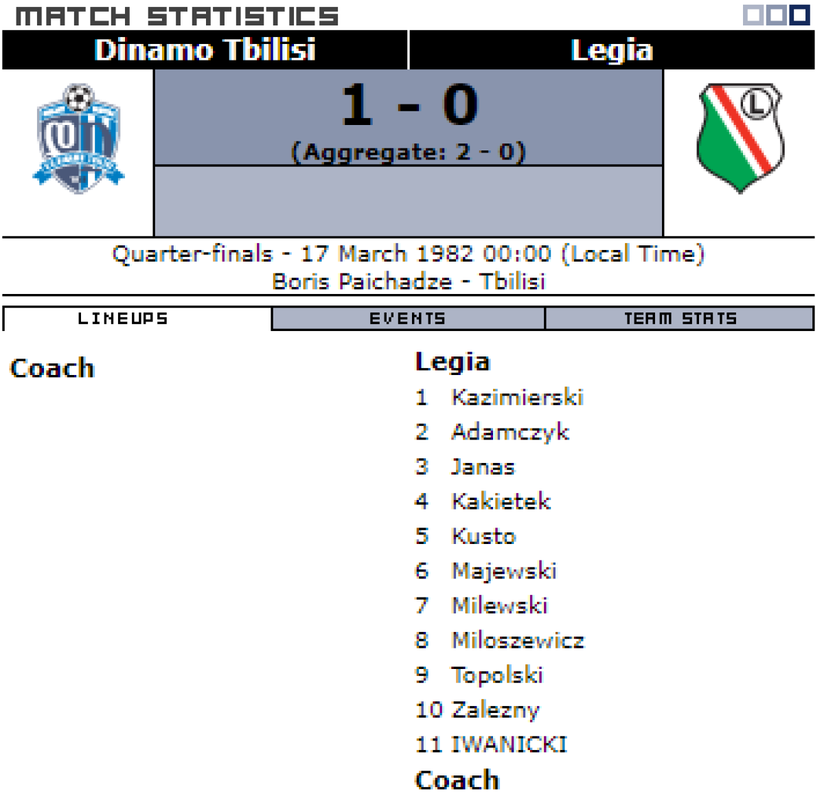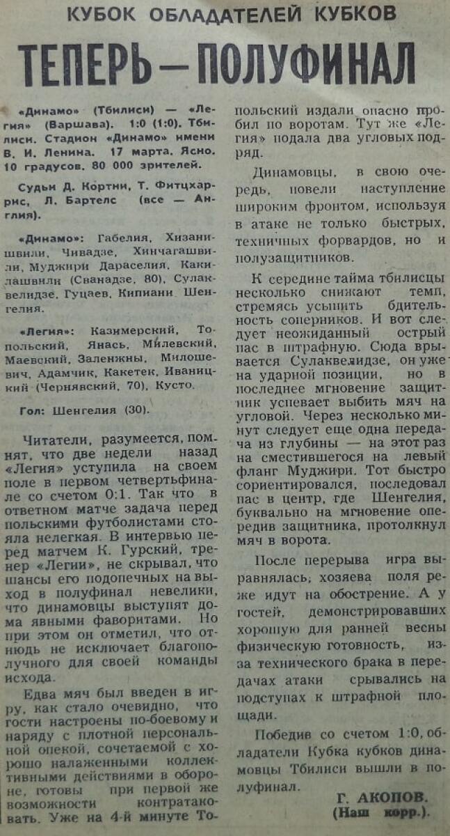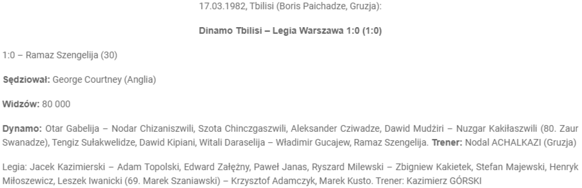 «Динамо» Тбилиси - «ЦВСК Легия» Варшава - 1:0