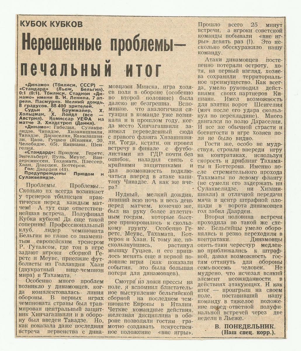 «Динамо» Тбилиси - «Стандард» Льеж - 0:1