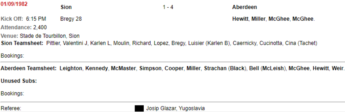«Сьон» Сьон - «Абердин» Абердин - 1:4