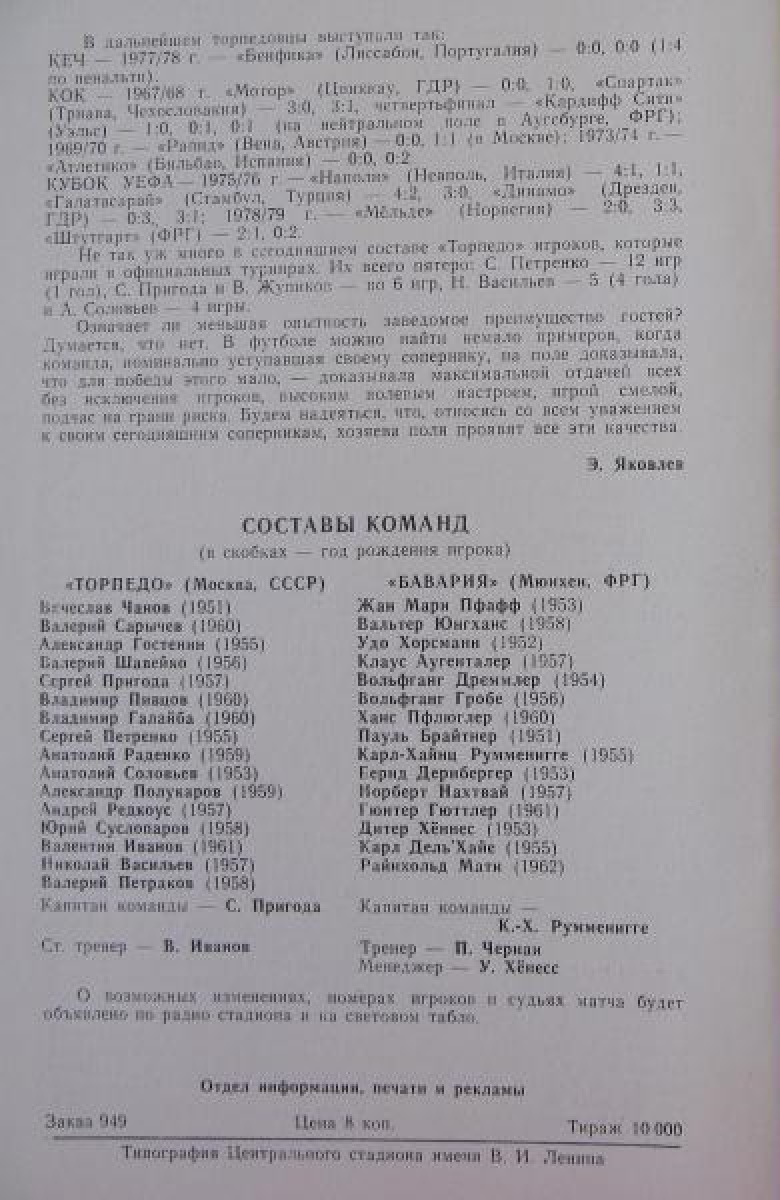 «Торпедо» Москва - «Бавария» Мюнхен - 1:1