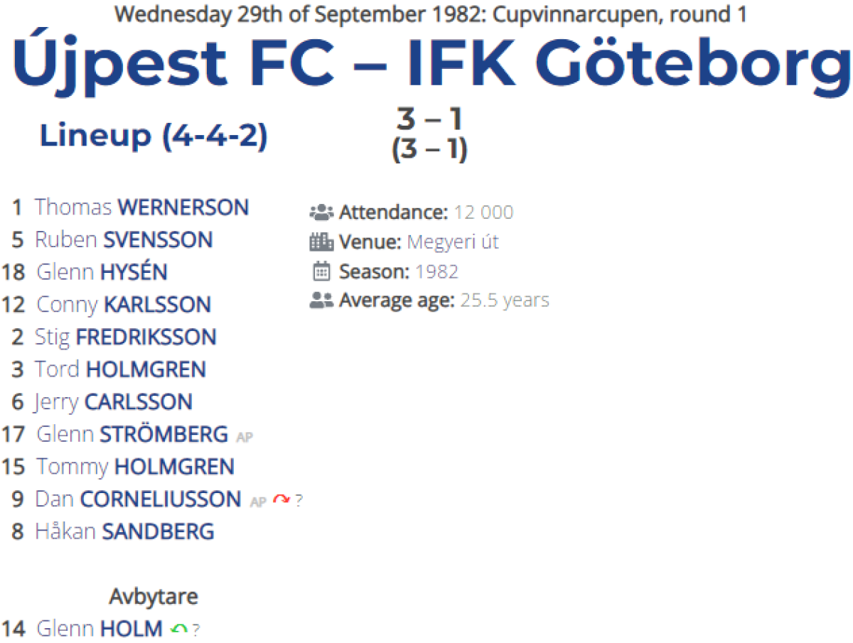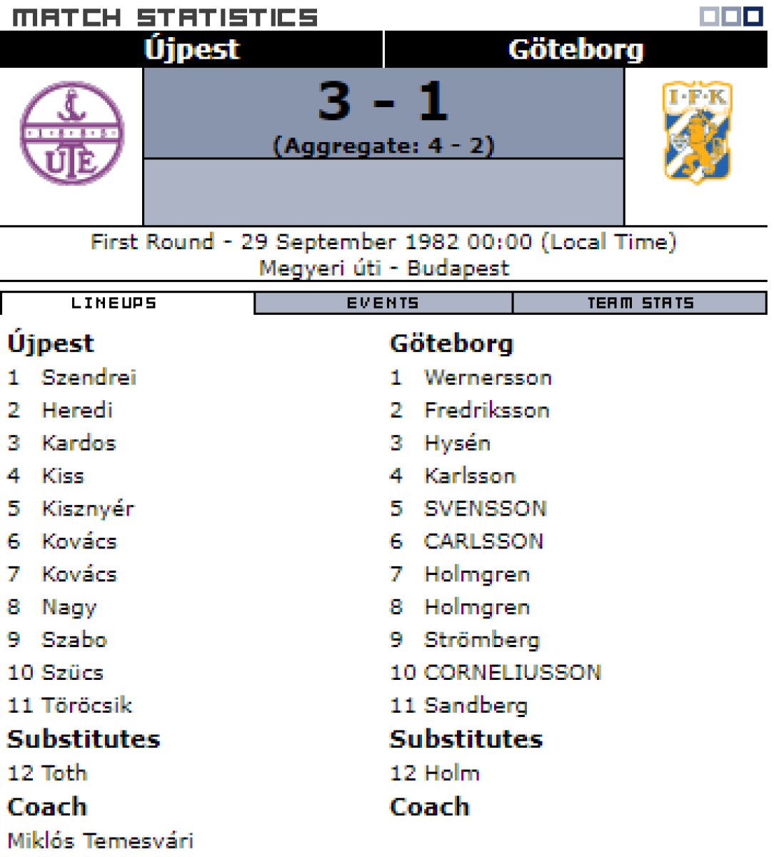 «Уйпешт Дожа» Будапешт - «Гётеборг» Гётеборг - 3:1