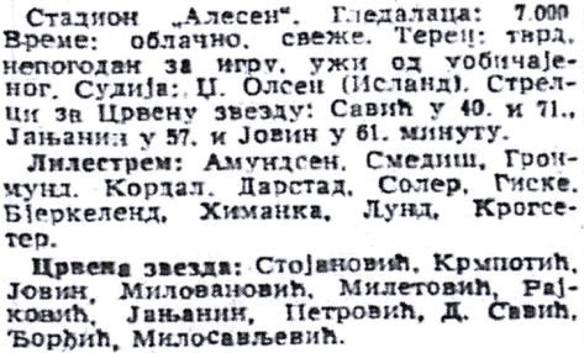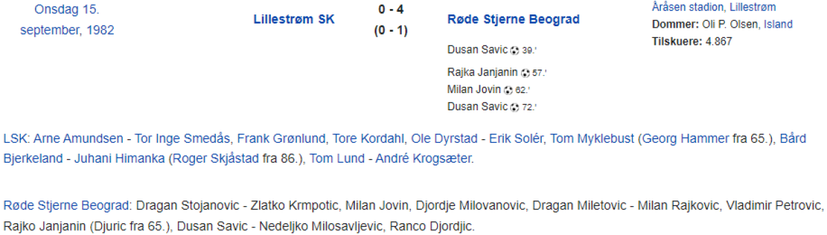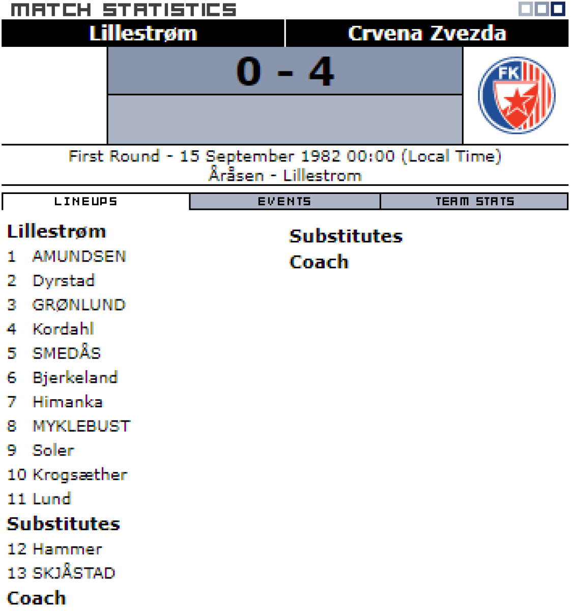 «Лиллестрём» Лиллестрём - «Црвена Звезда» Белград - 0:4