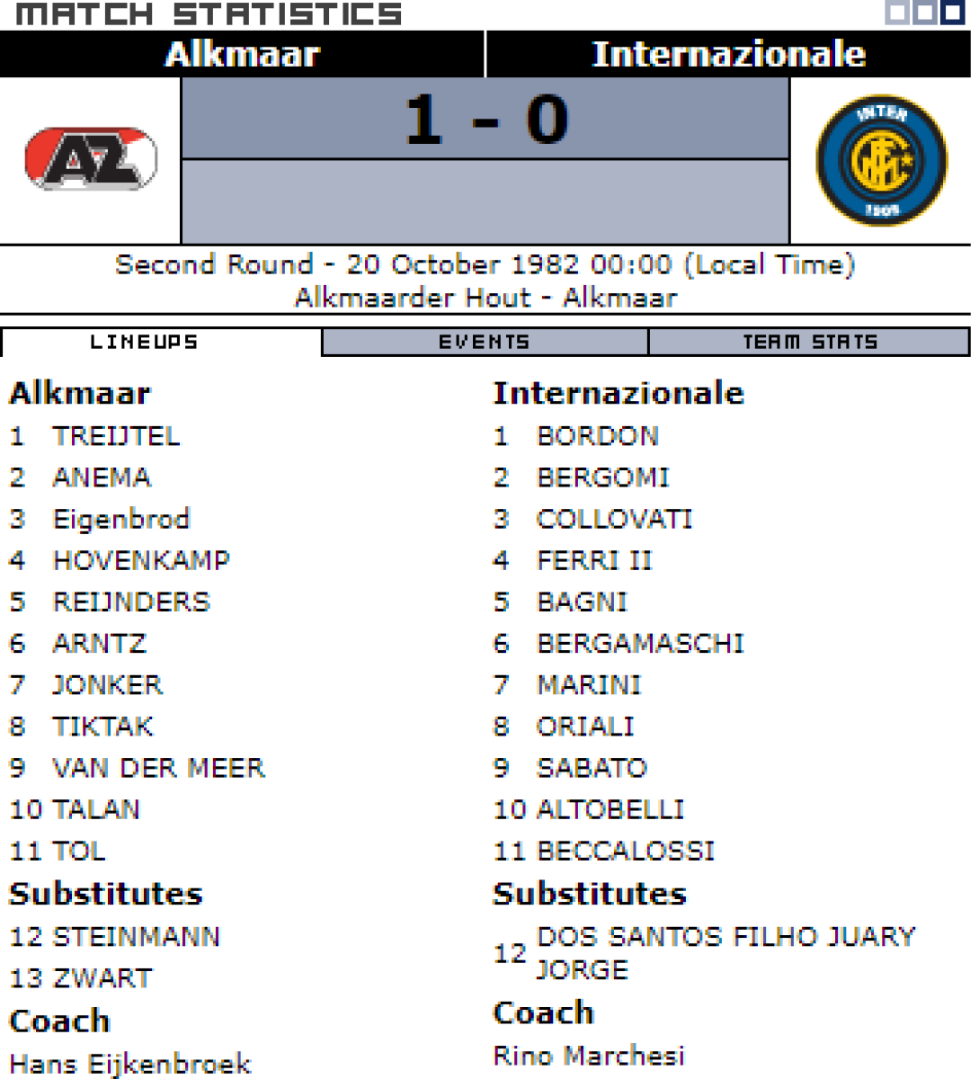 «АЗ-67» Алкмар - «Интернационале» Милан - 1:0