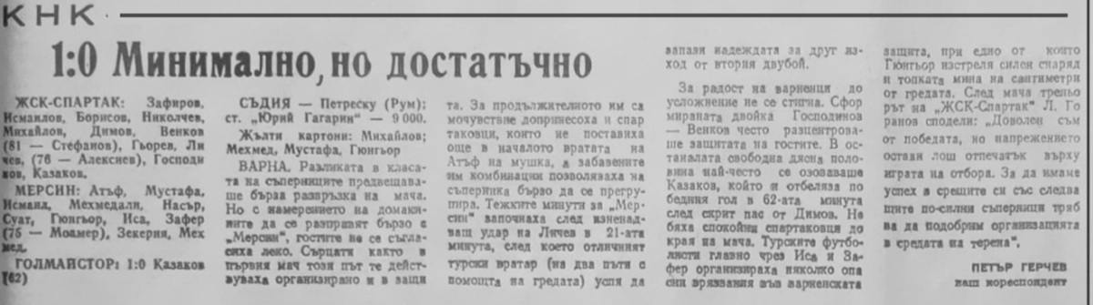 «ЖСК-Спартак» Варна - «Мерсин Идман Юрду» Мерсин - 1:0