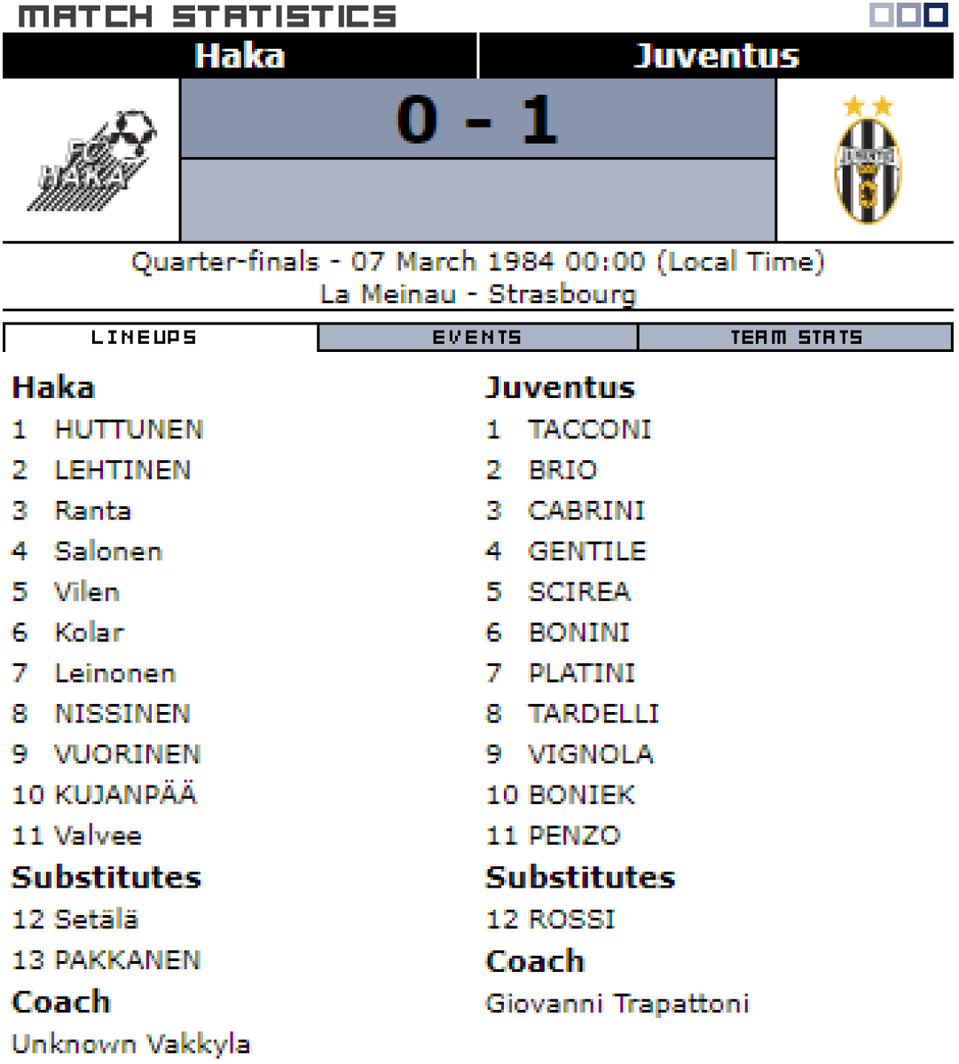 «Хака» Валкеакоски - «Ювентус» Турин - 0:1