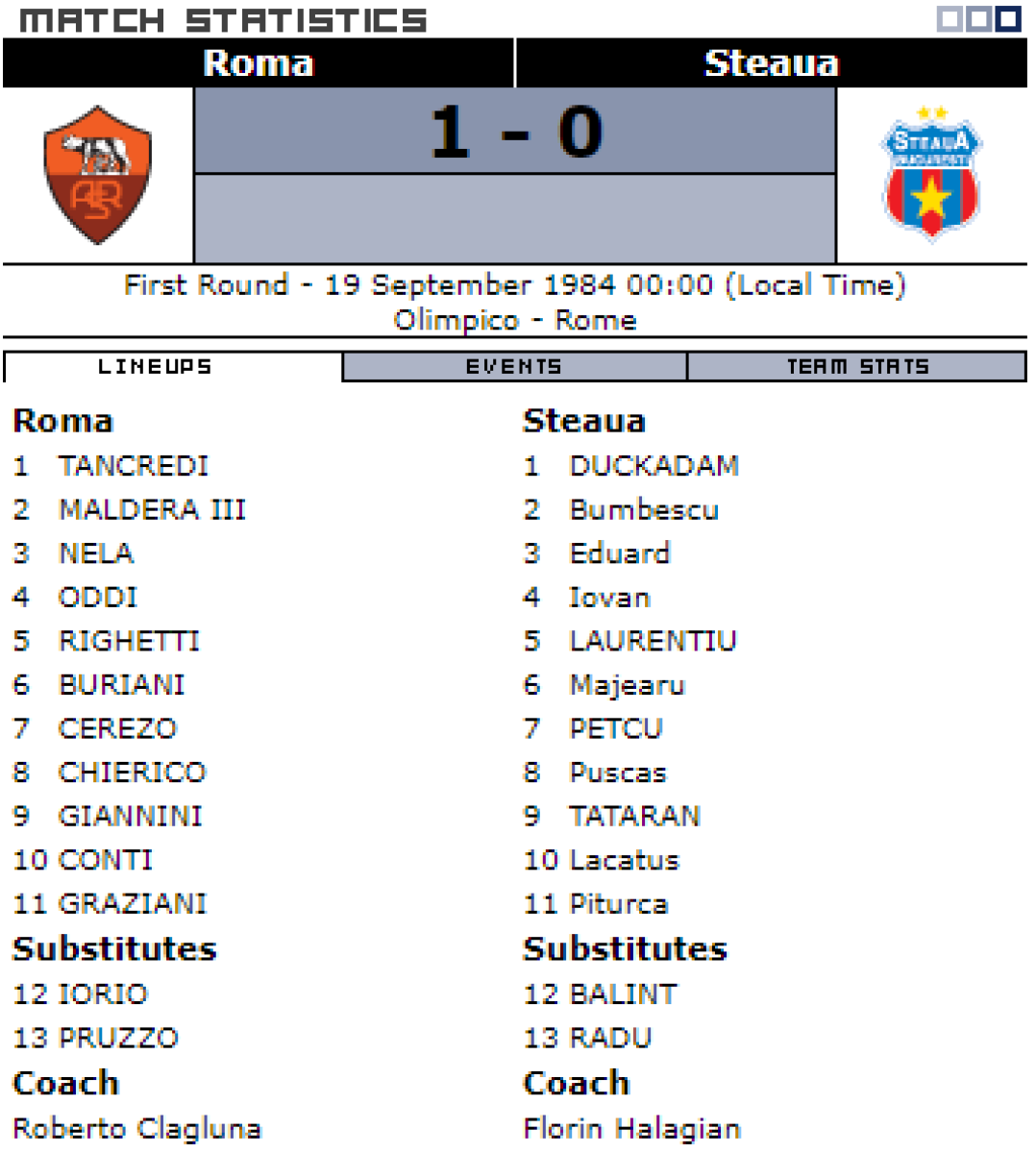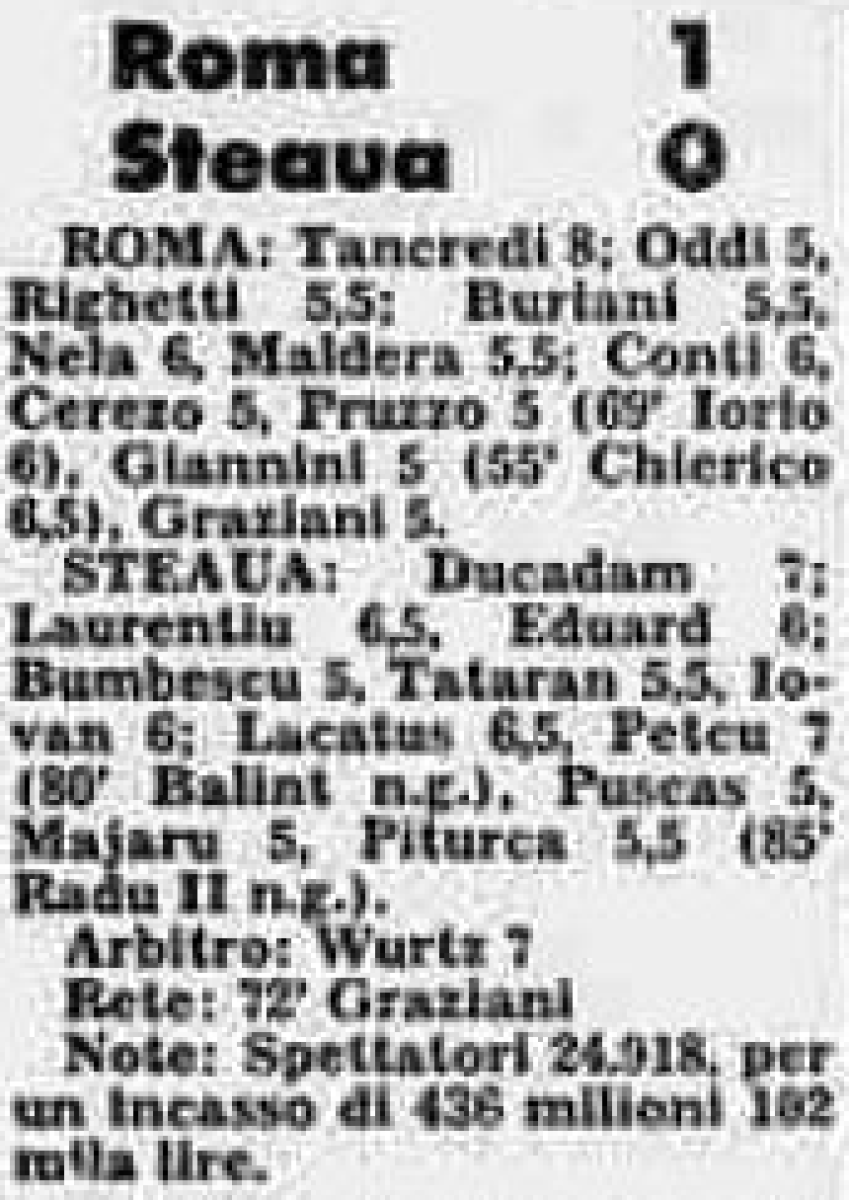 «Рома» Рим - «Стяуа» Бухарест - 1:0