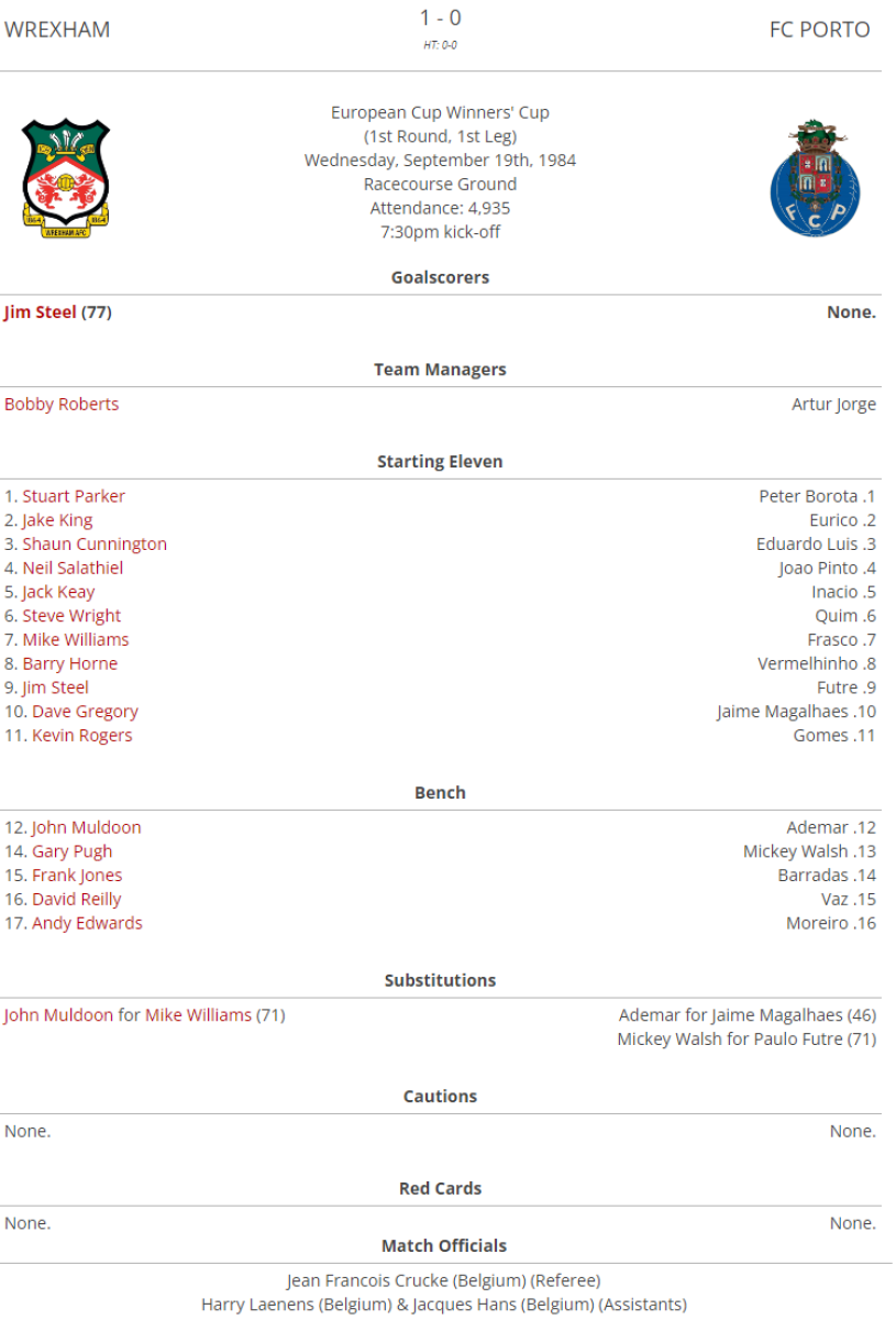 «Рексем» Рексем - «Порту» Порту - 1:0