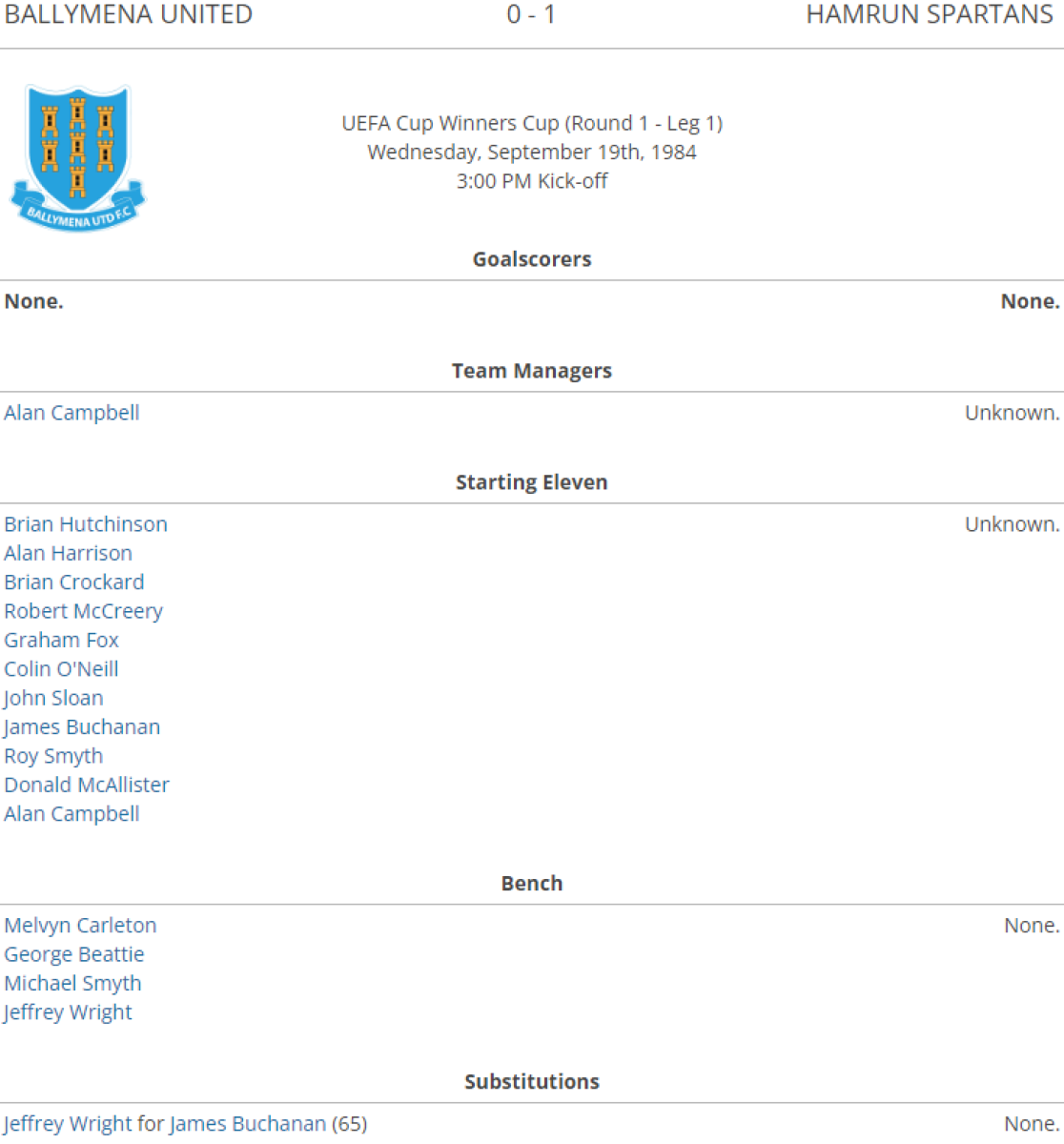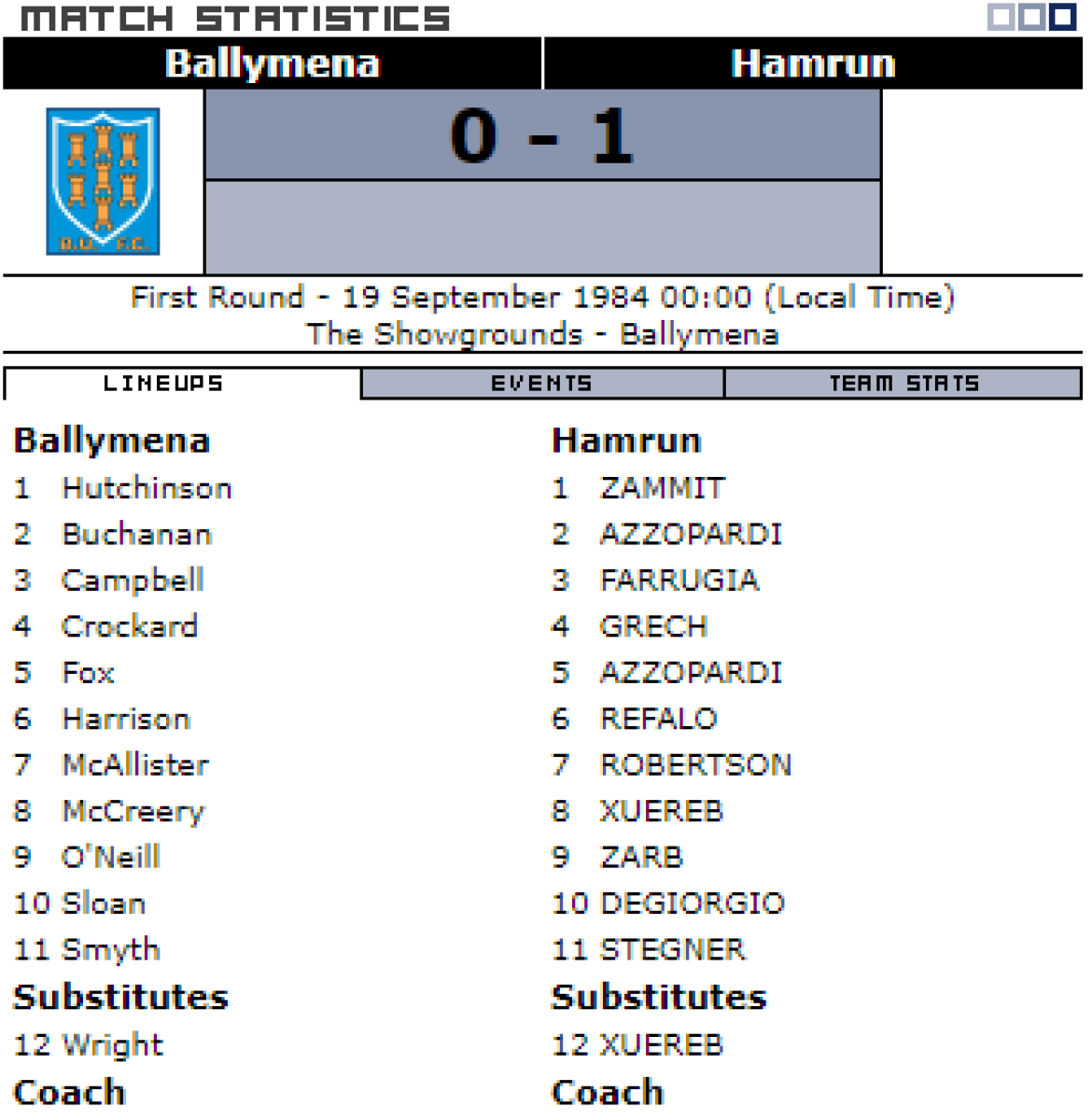 «Баллимена Юнайтед» Баллимена - «Хамрун Спартанс» Хамрун - 0:1