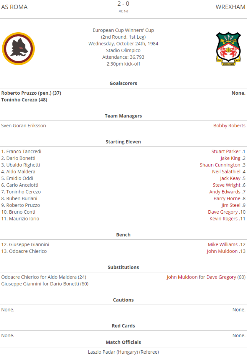 «Рома» Рим - «Рексем» Рексем - 2:0