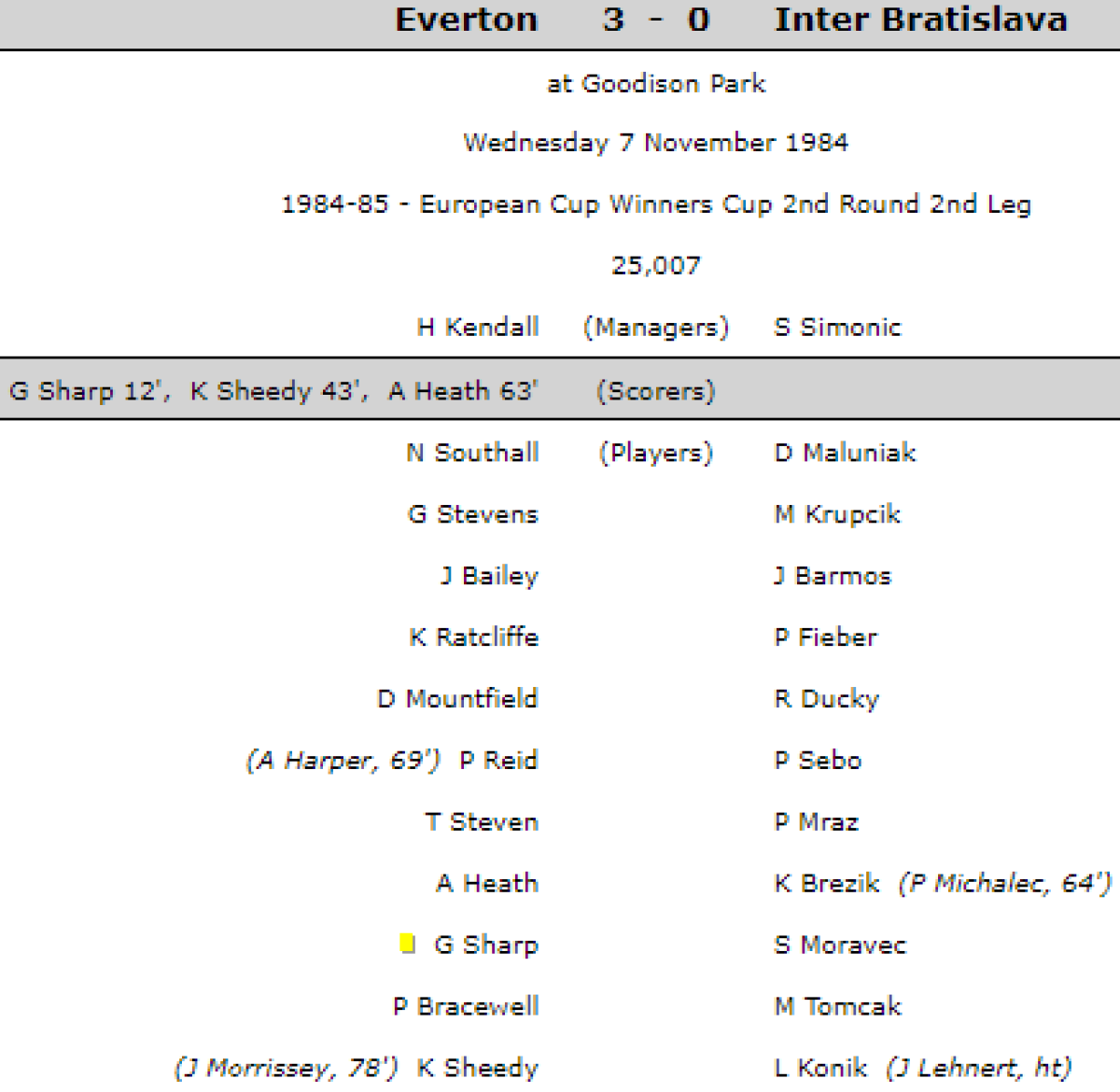 «Эвертон» Ливерпуль - «Интернациональ Словнафт» Братислава - 3:0