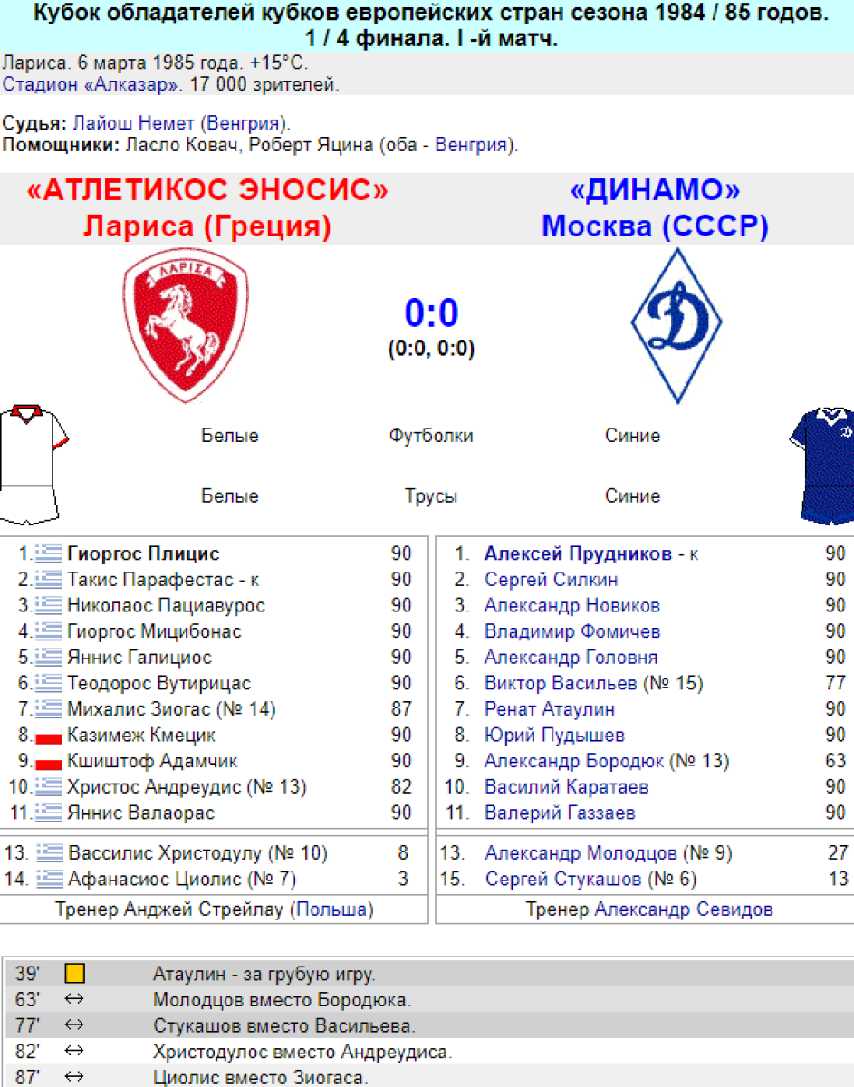 «Лариса» Лариса - «Динамо» Москва - 0:0