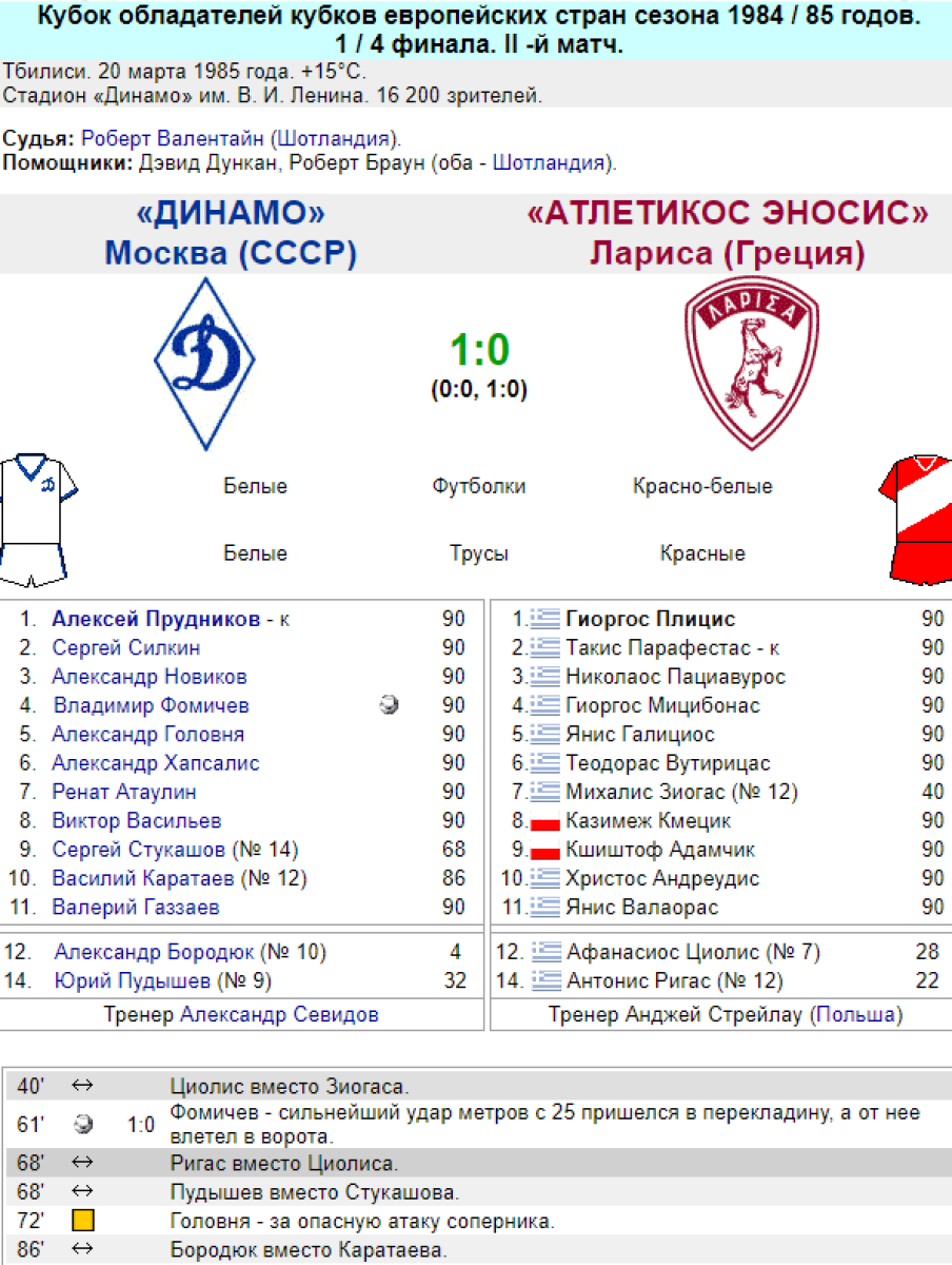 «Динамо» Москва - «Лариса» Лариса - 1:0