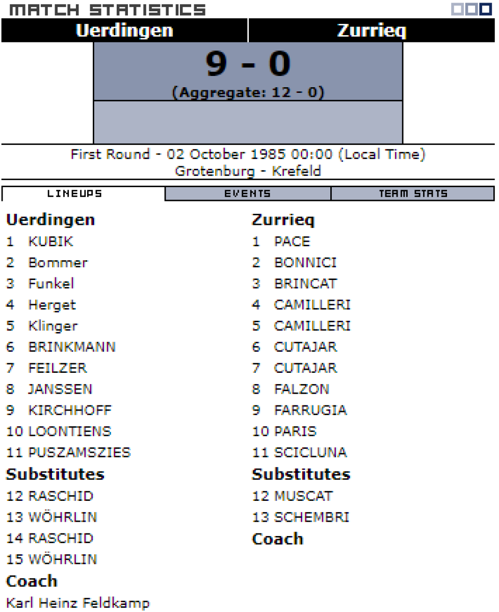 «Байер-05» Крефельд - «Зуррик» Зуррик - 9:0