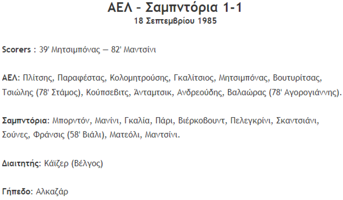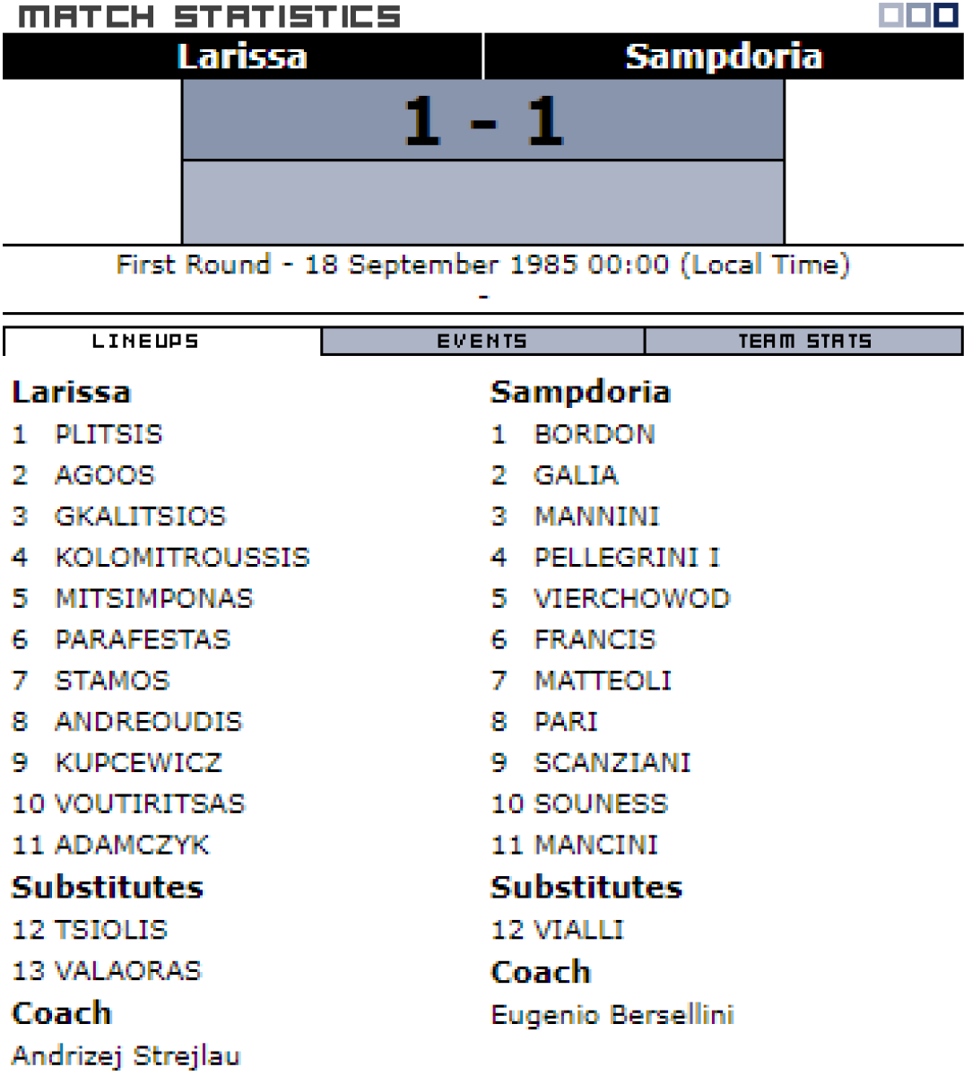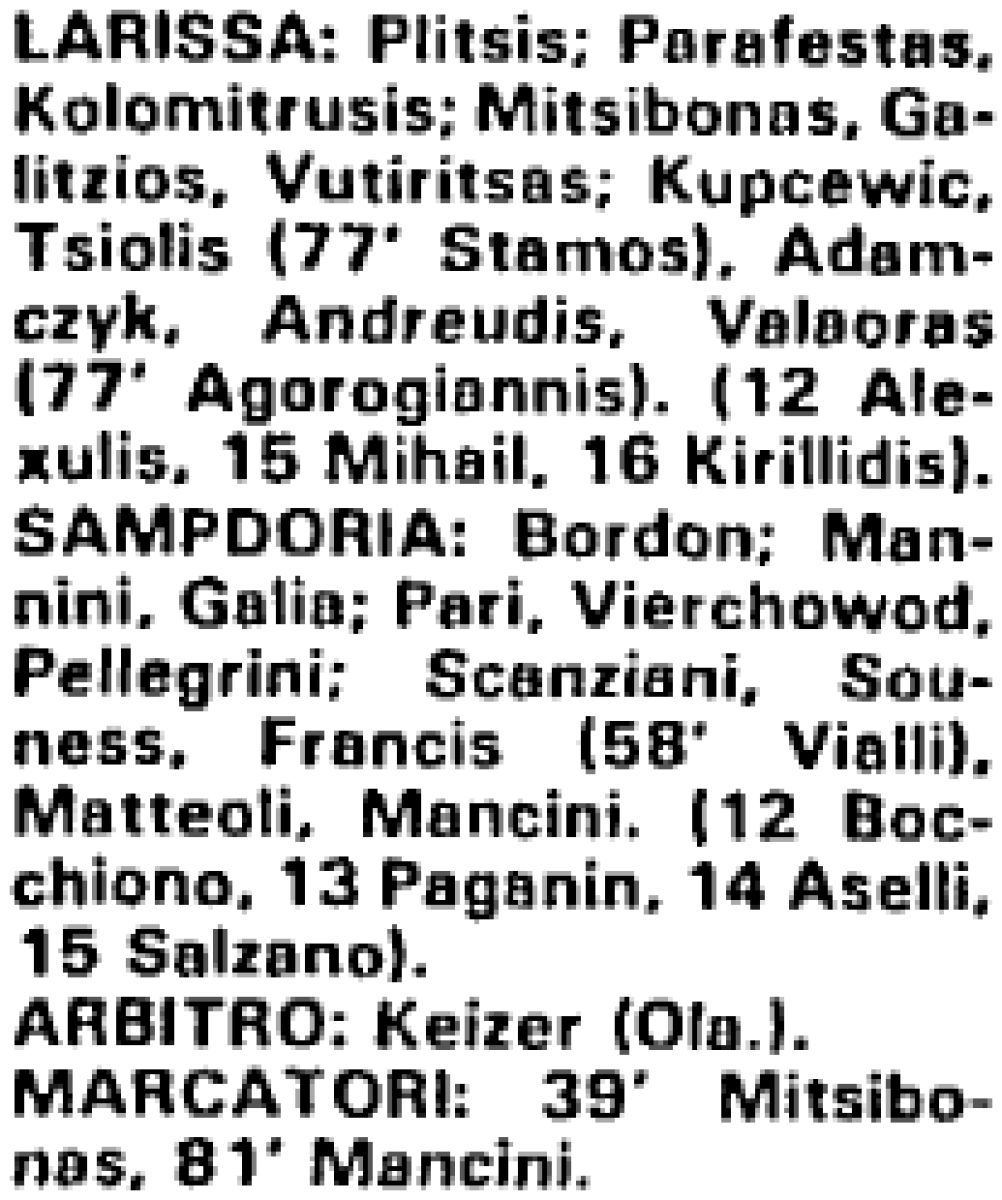 «Лариса» Лариса - «Сампдория» Генуя - 1:1