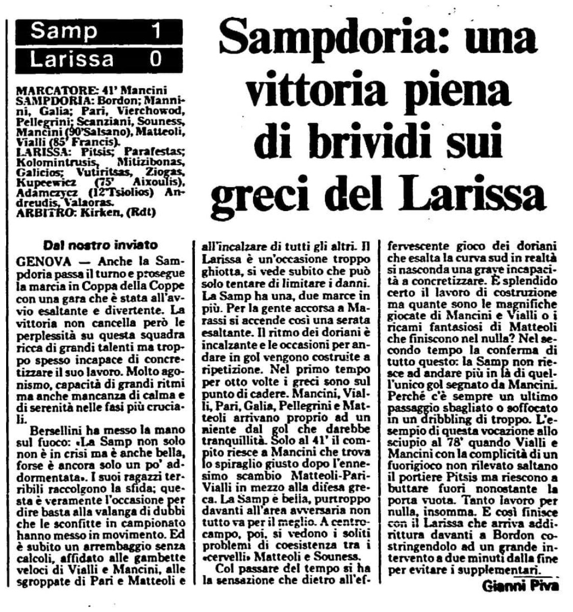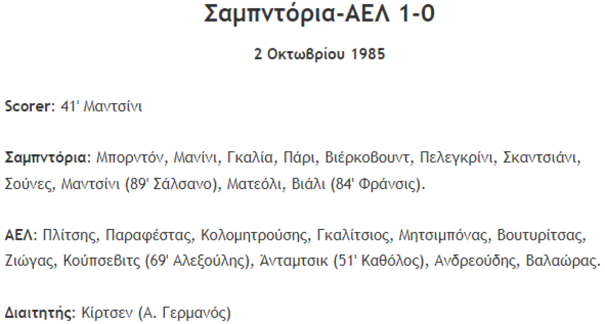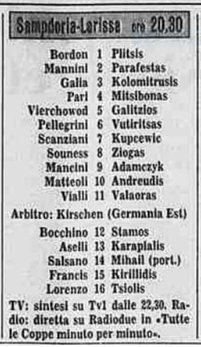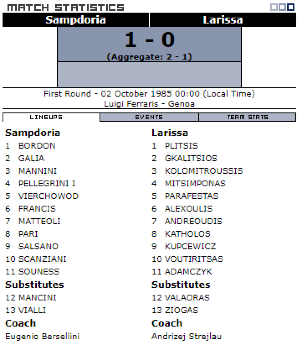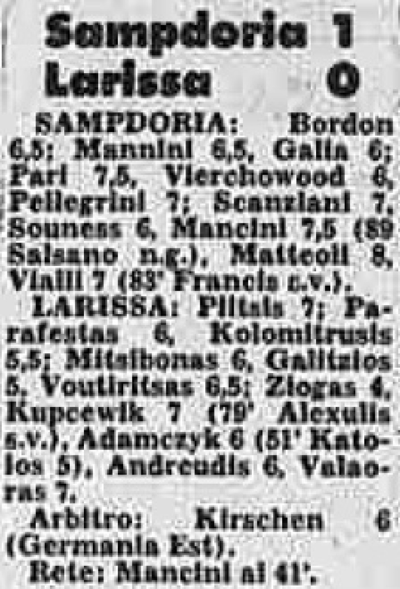 «Сампдория» Генуя - «Лариса» Лариса - 1:0
