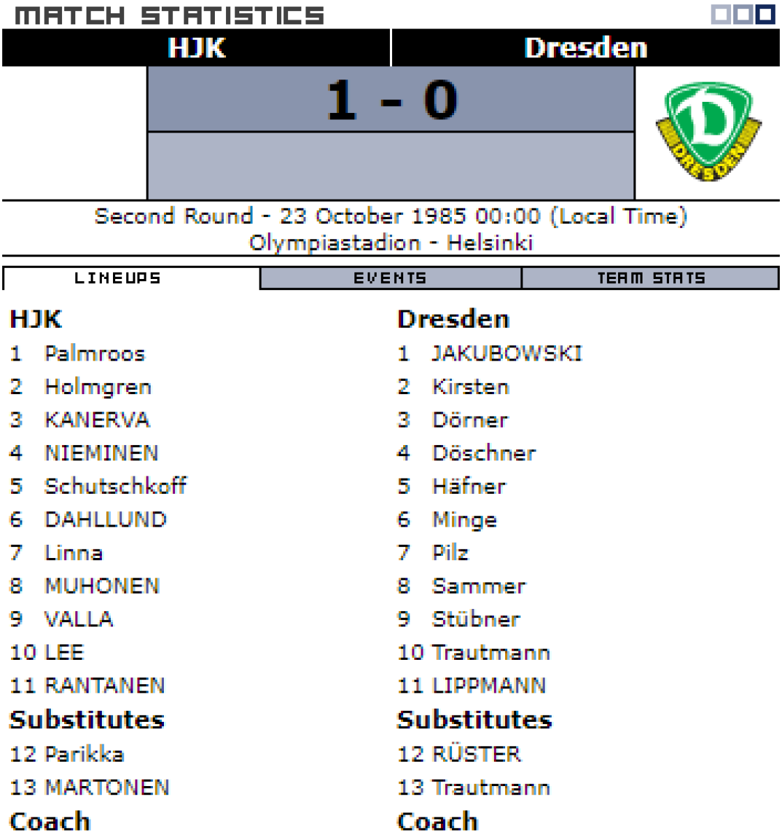 ХИК Хельсинки - «Динамо» Дрезден - 1:0