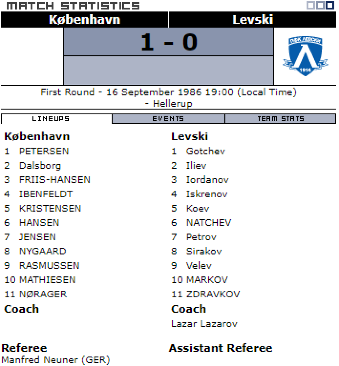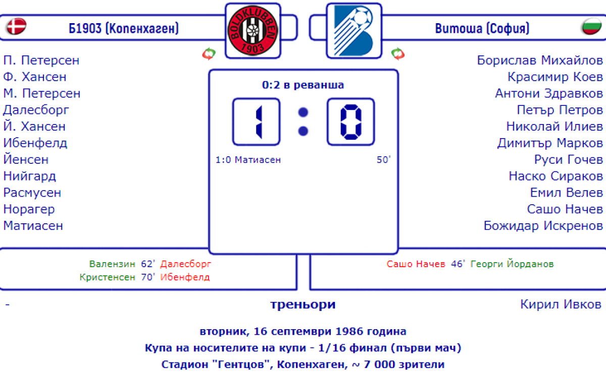 Б-1903 Копенгаген - «Витоша» София - 1:0