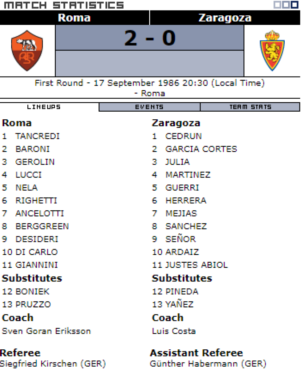«Рома» Рим - «Реал Сарагоса» Сарагоса - 2:0