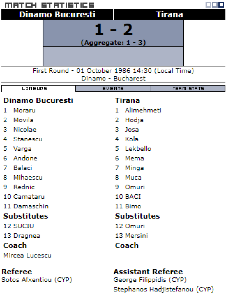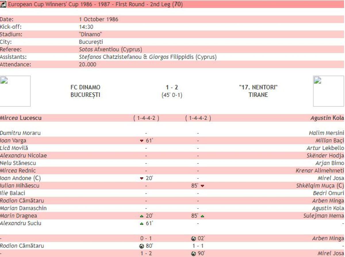 «Динамо» Бухарест - «17 Нентори» Тирана - 1:2