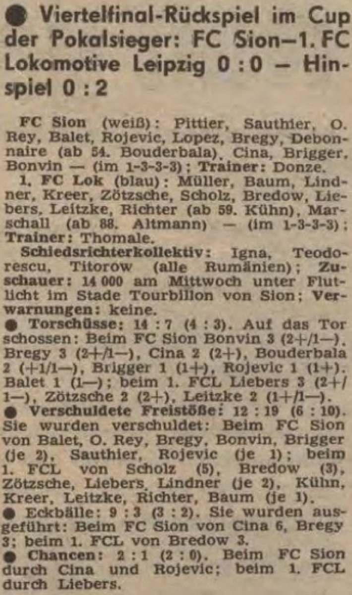 «Сьон» Сьон - «1. ФК Локомотив» Лейпциг - 0:0