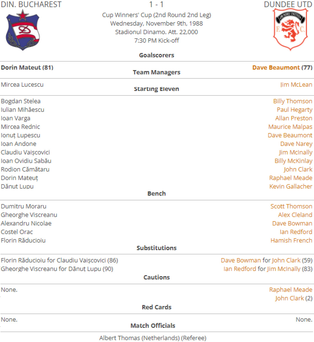 «Динамо» Бухарест - «Данди Юнайтед» Данди - 1:1