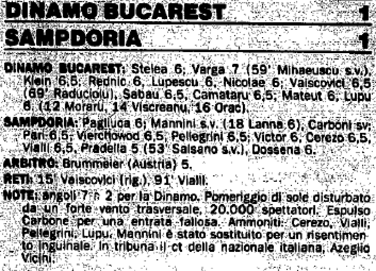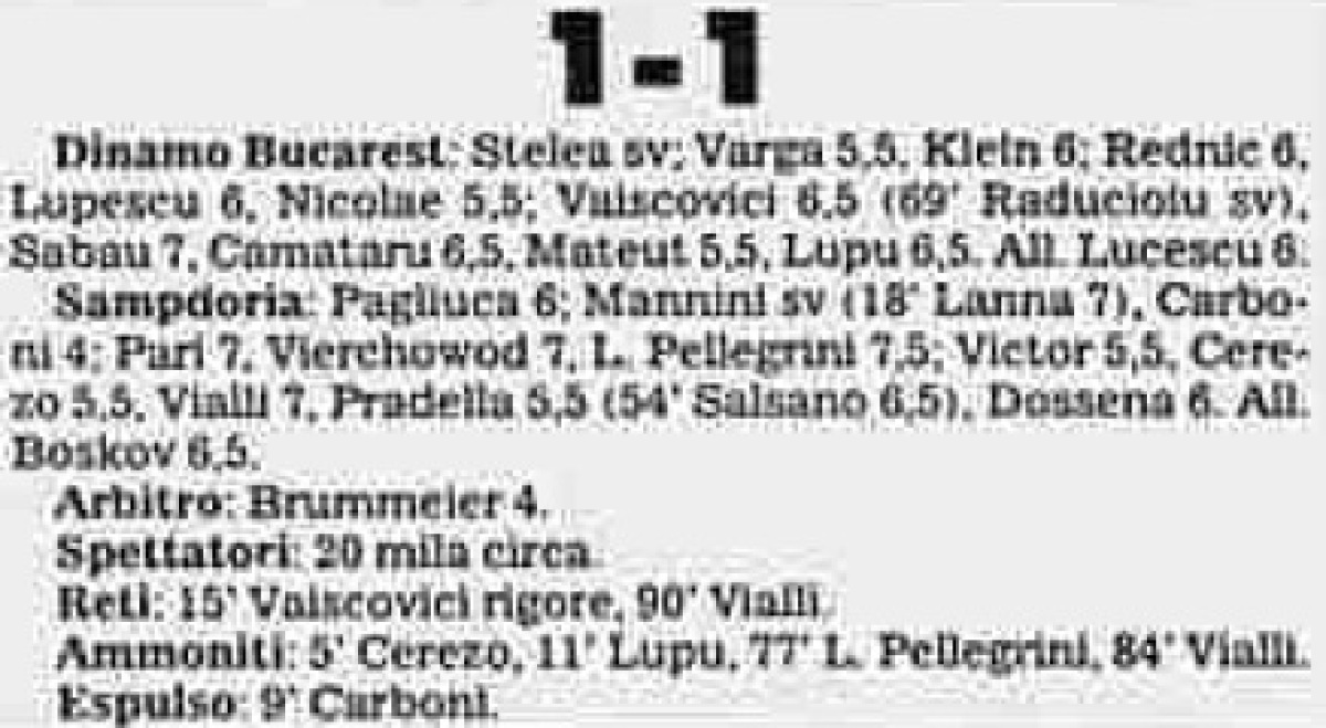 «Динамо» Бухарест - «Сампдория» Генуя - 1:1
