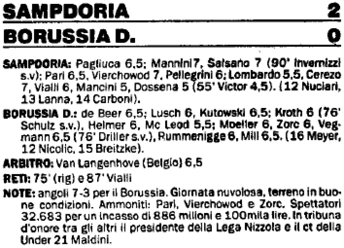«Сампдория» Генуя - «Боруссия-09» Дортмунд - 2:0