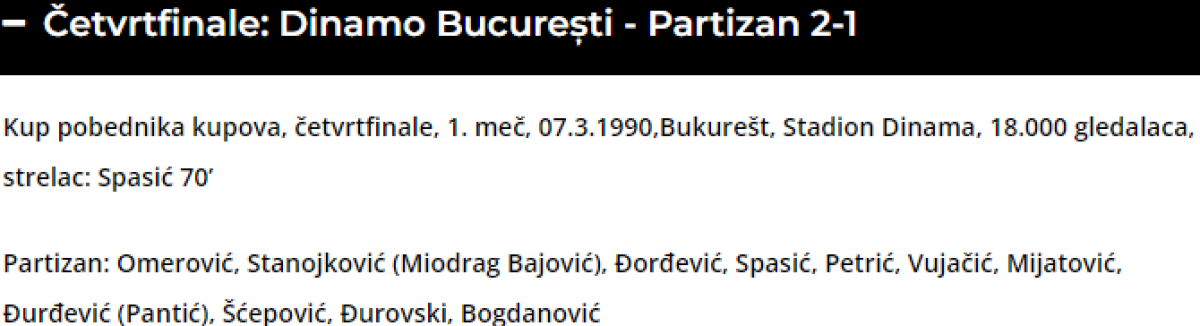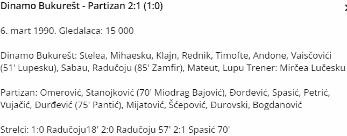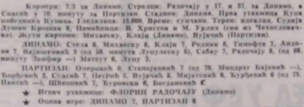 «Динамо» Бухарест - «Партизан» Белград - 2:1
