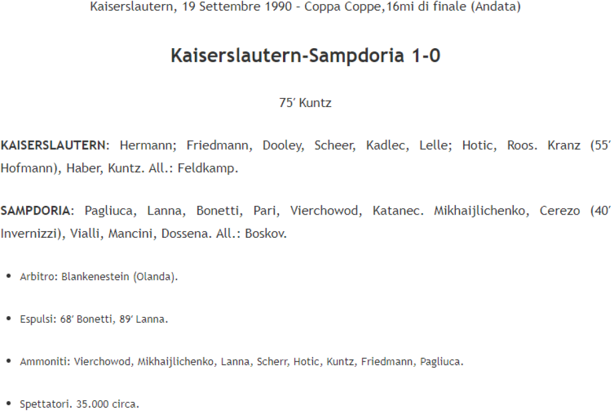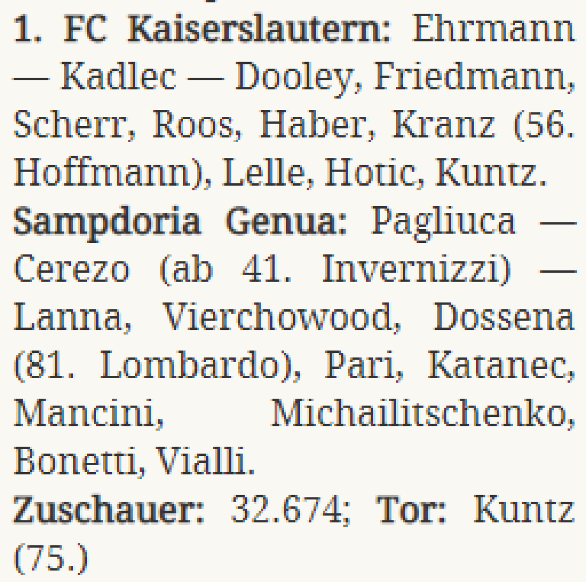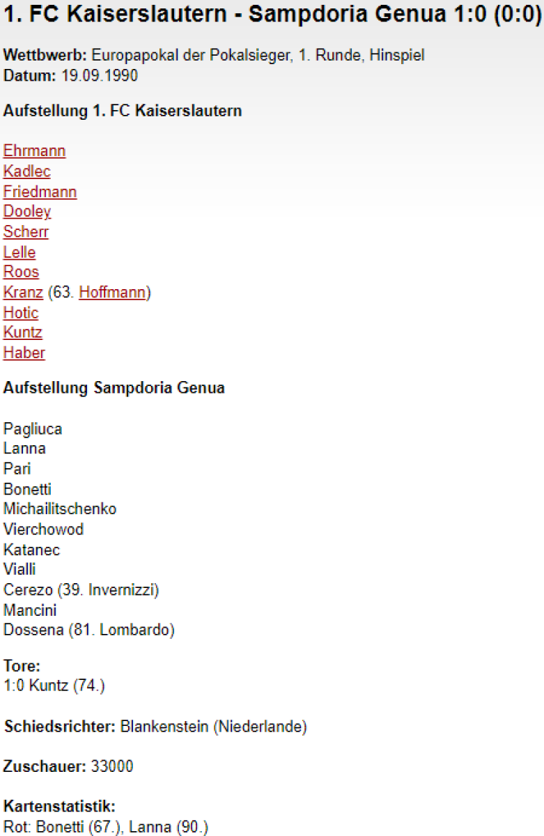 «1. ФК Кайзерслаутерн» Кайзерслаутерн - «Сампдория» Генуя - 1:0
