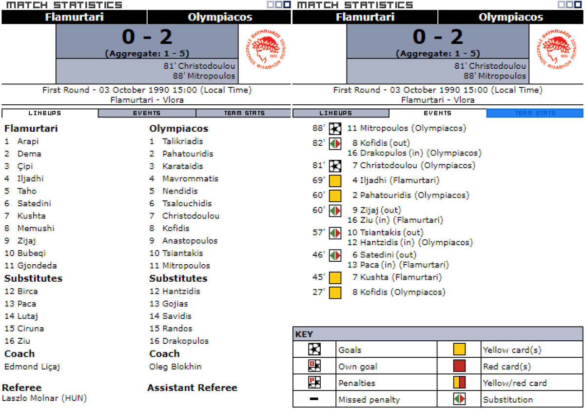 «Фламуртари» Влёра - «Олимпиакос» Пирей - 0:2