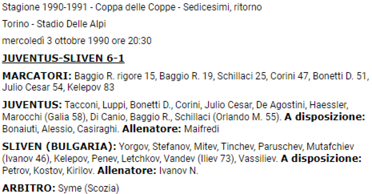 «Ювентус» Турин - «Сливен» Сливен - 6:1
