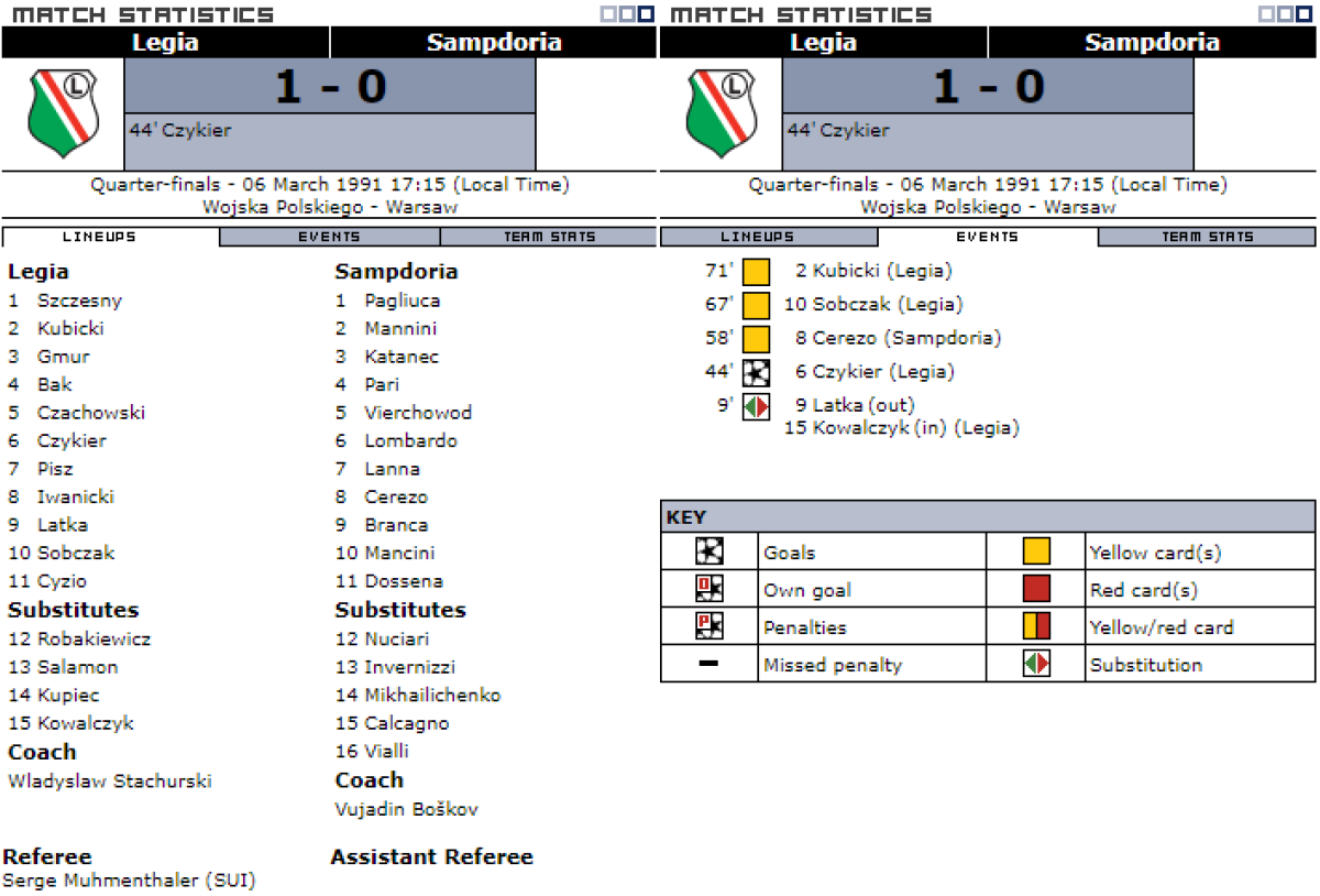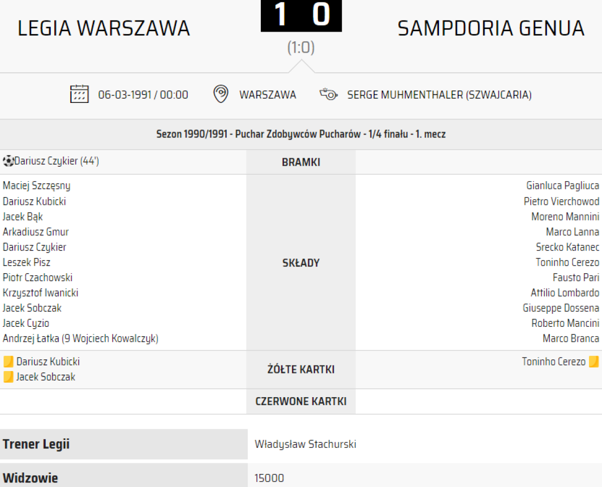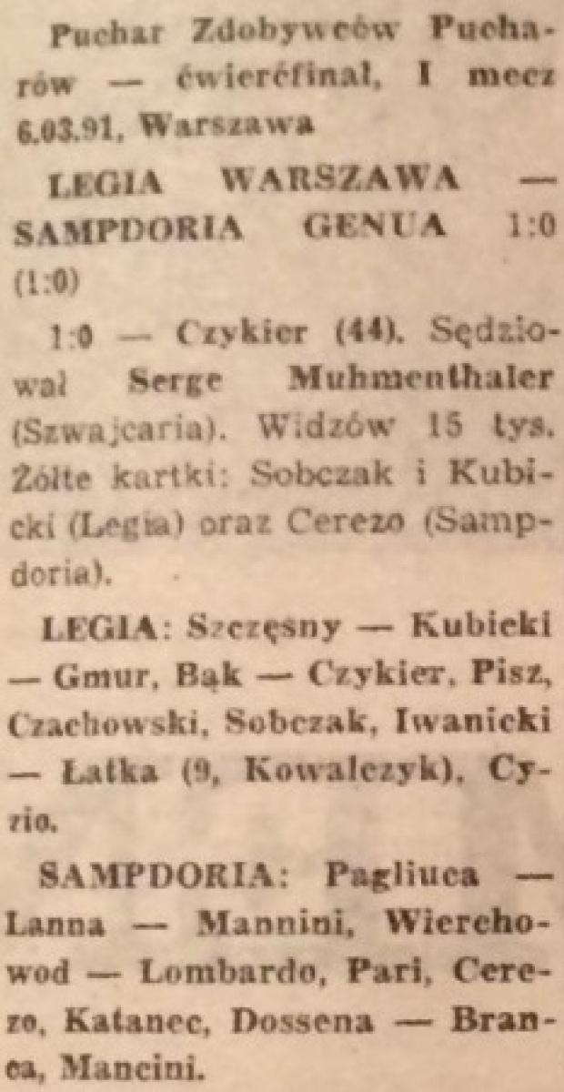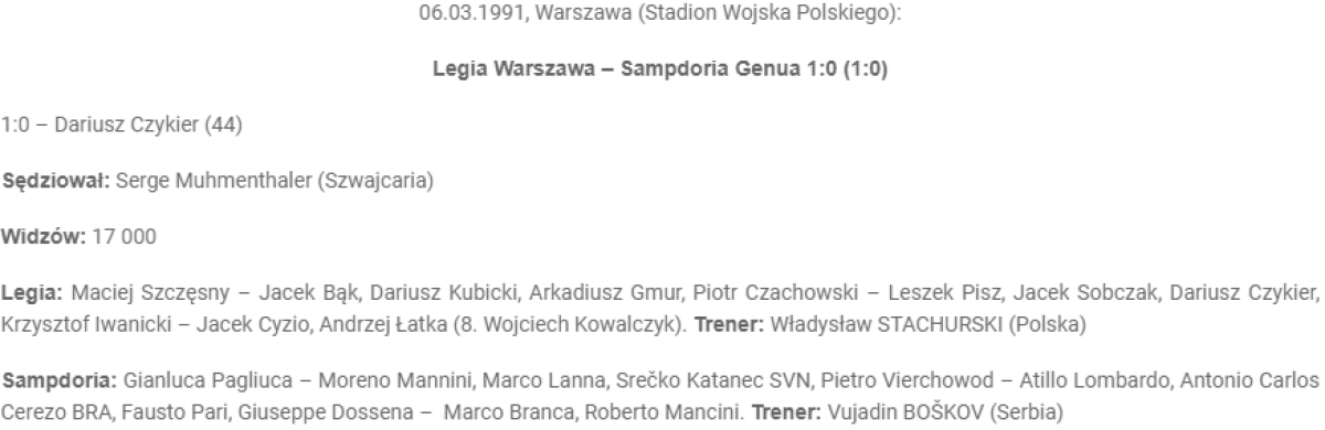 «ЦВСК Легия» Варшава - «Сампдория» Генуя - 1:0