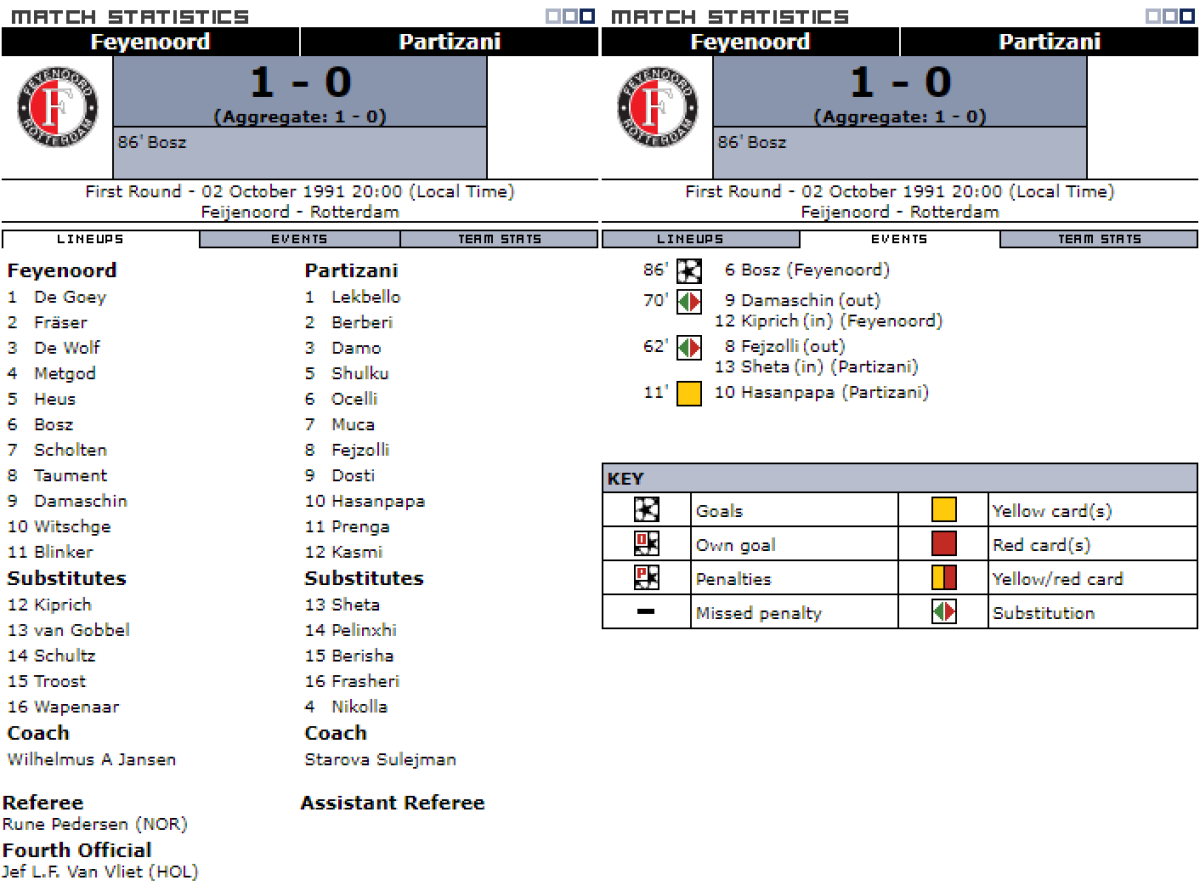 «Фейеноорд» Роттердам - «Партизани» Тирана - 1:0