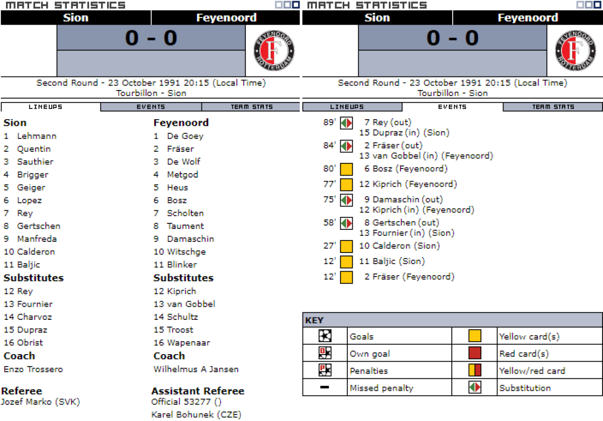 «Сьон» Сьон - «Фейеноорд» Роттердам - 0:0