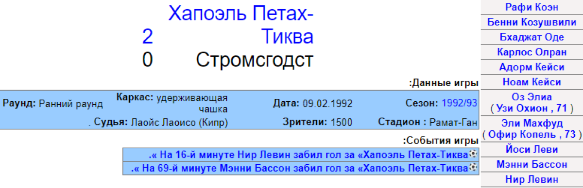 «Хапоэль» Петах-Тиква - «Стрёмсгодсет» Драммен - 2:0