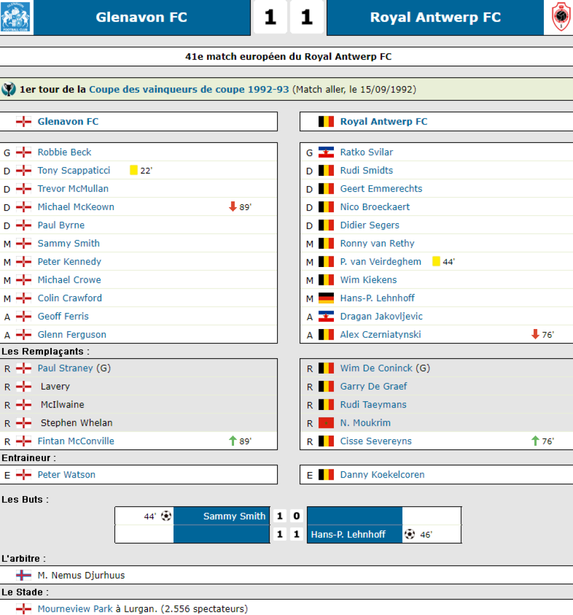 «Гленавон» Лурган - «Роял Антверп» Антверпен - 1:1