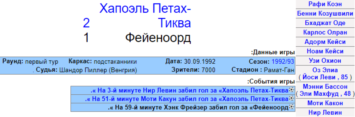 «Хапоэль» Петах-Тиква - «Фейеноорд» Роттердам - 2:1