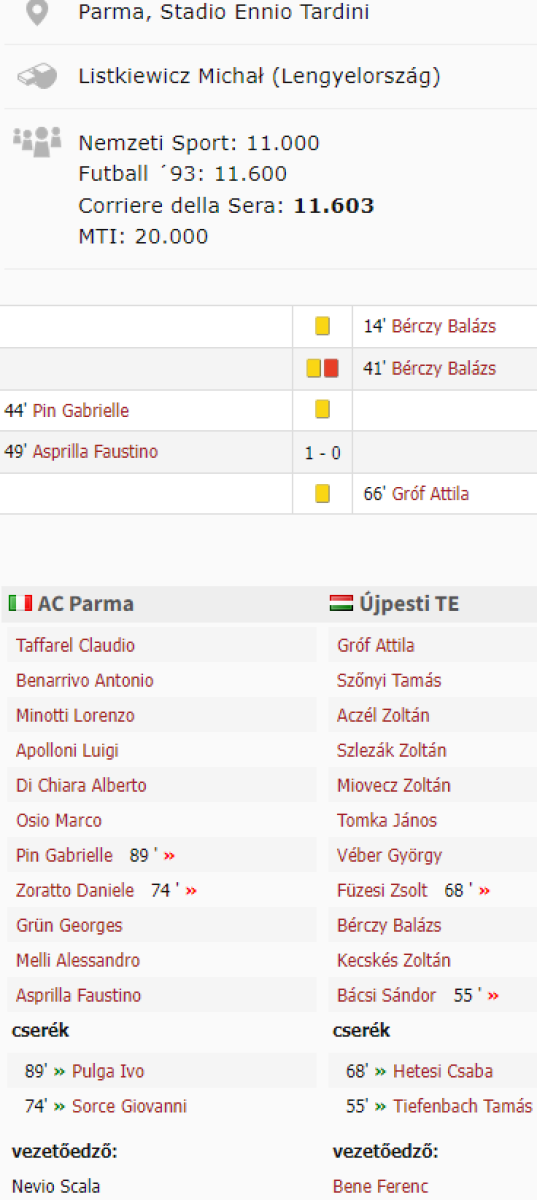 «Парма» Парма - «Уйпешт» Будапешт - 1:0