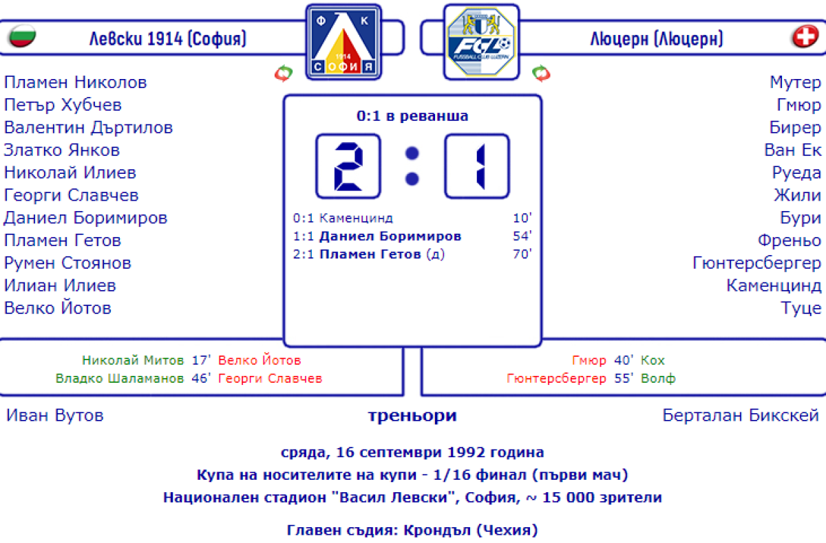 «Левски-1914» София - «Люцерн» Люцерн - 2:1