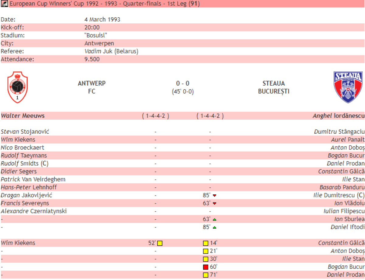 «Роял Антверп» Антверпен - «Стяуа» Бухарест - 0:0