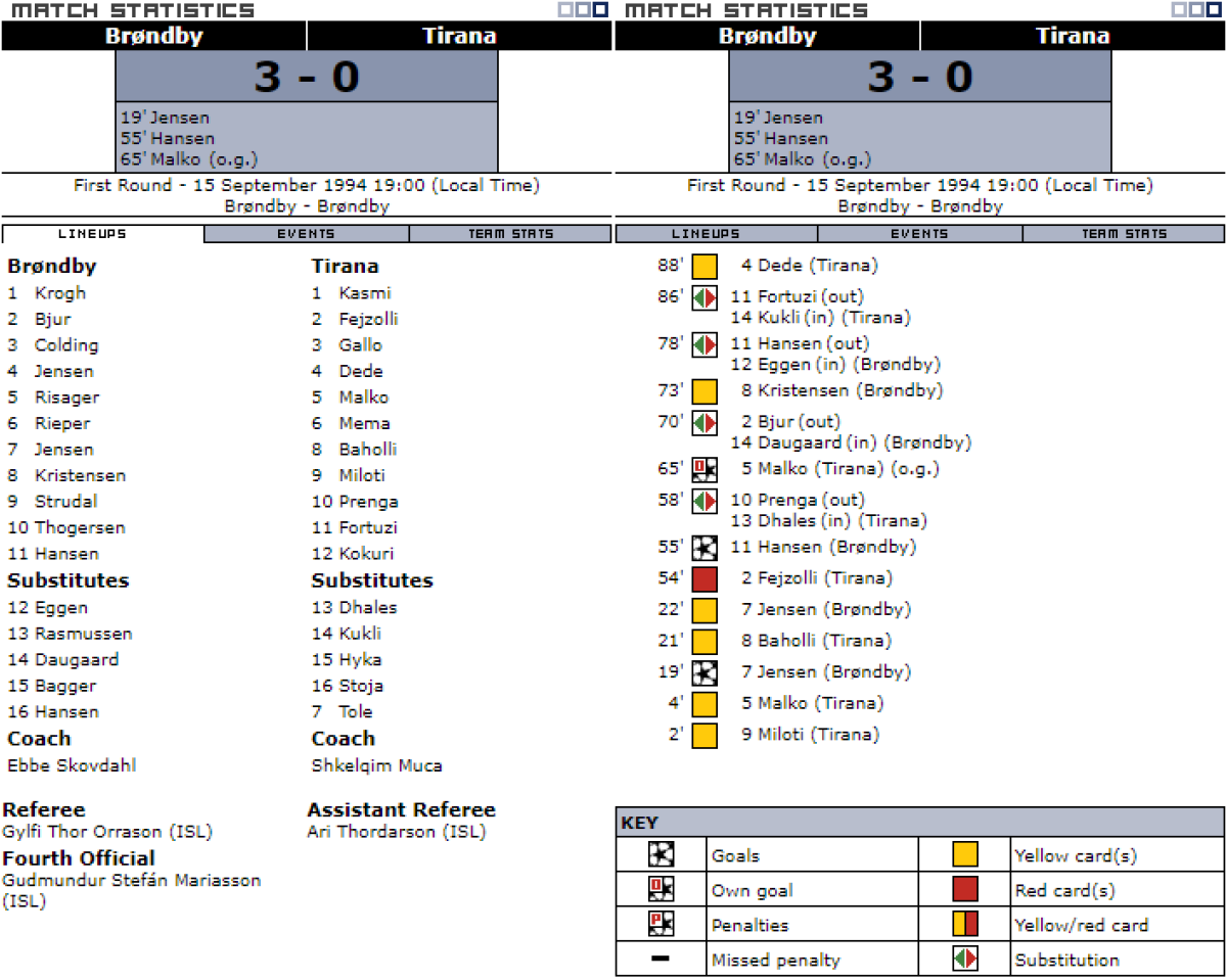 «Брондбю» Брённбювестер - «Тирана» Тирана - 3:0