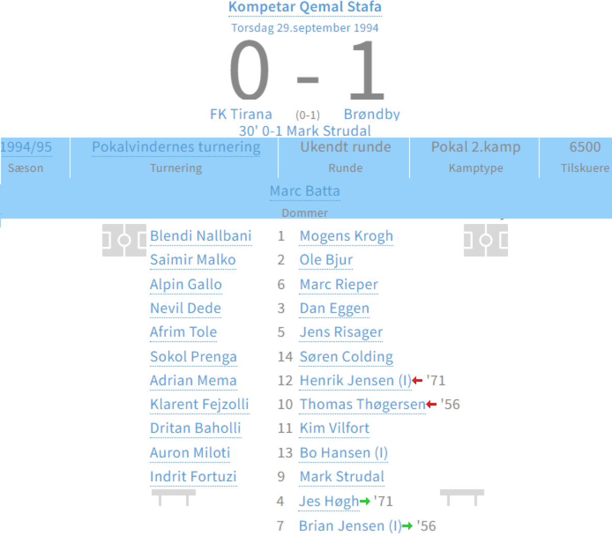 «Тирана» Тирана - «Брондбю» Брённбювестер - 0:1