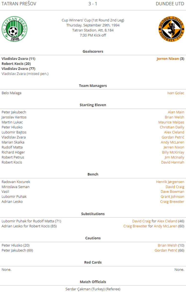 «Татран» Прешов - «Данди Юнайтед» Данди - 3:1