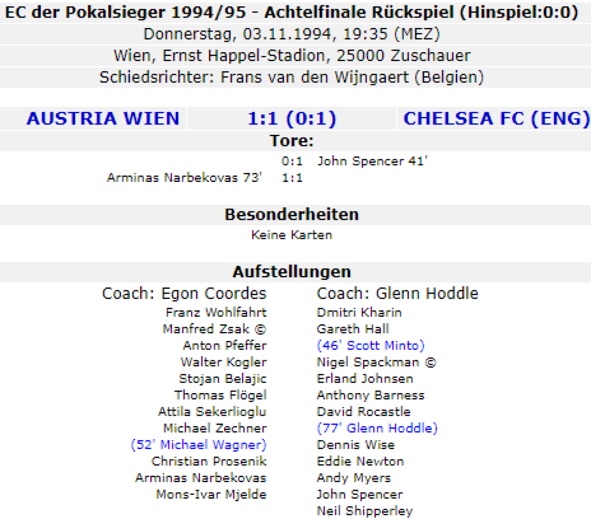 «Аустрия-Мемфис» Вена - «Челси» Лондон - 1:1